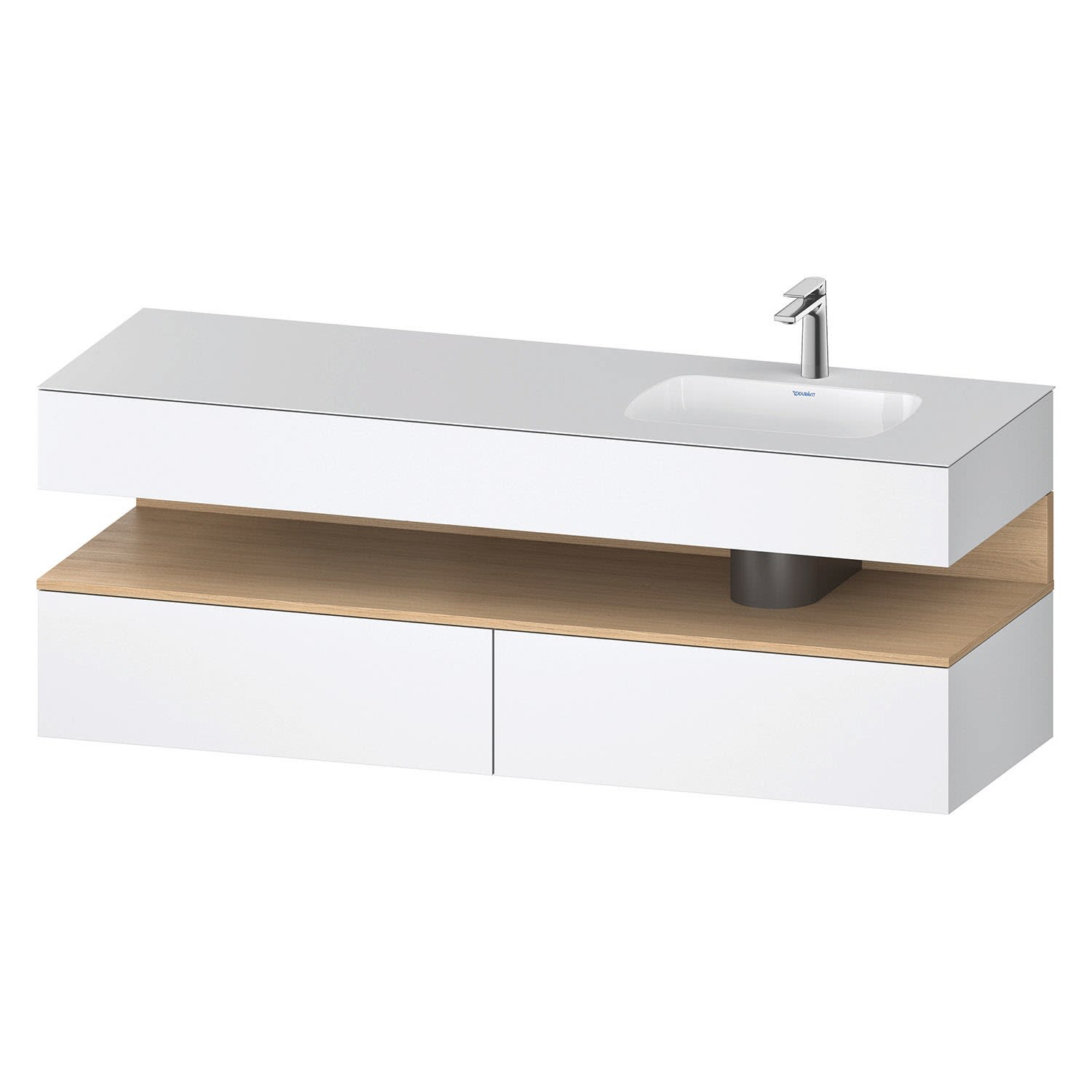 Duravit Qatego Einbauwaschtisch rechts mit Konsolenwaschtischunterbau 160 x 60 cm, 1 Auszug, mit LED Beleuchtung