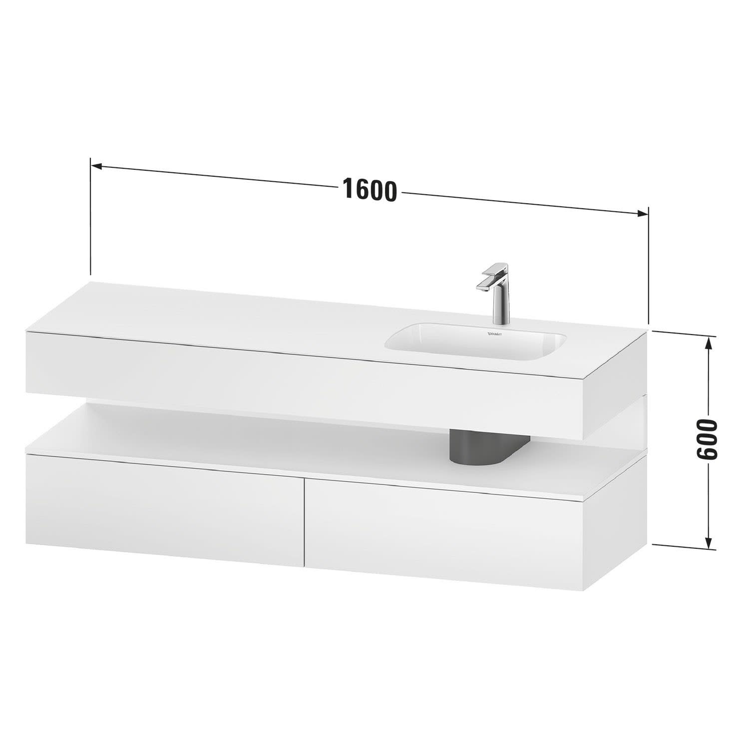 Duravit Qatego Einbauwaschtisch rechts mit Konsolenwaschtischunterbau 160 x 60 cm, 1 Auszug, mit LED Beleuchtung