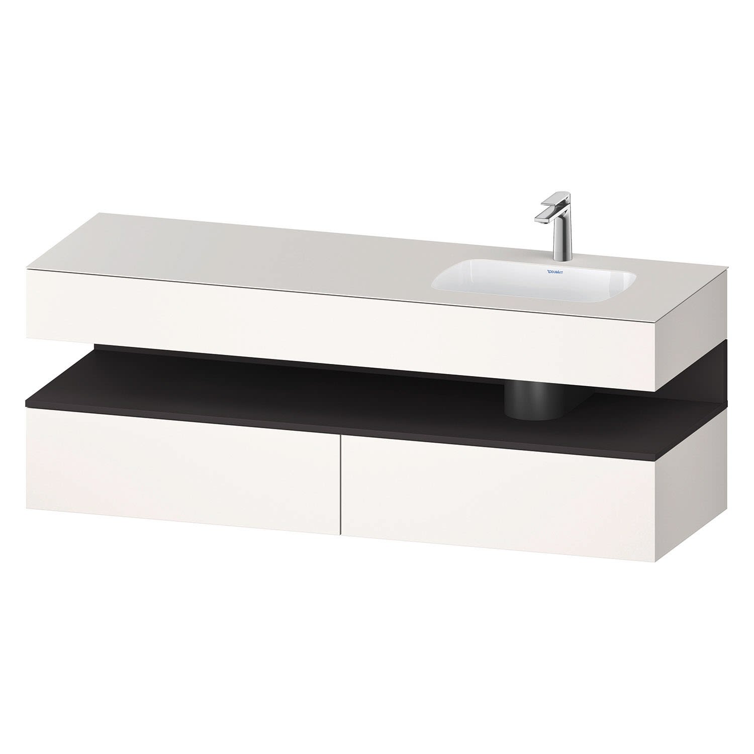 Duravit Qatego Einbauwaschtisch rechts mit Konsolenwaschtischunterbau 160 x 60 cm, 1 Auszug, mit LED Beleuchtung