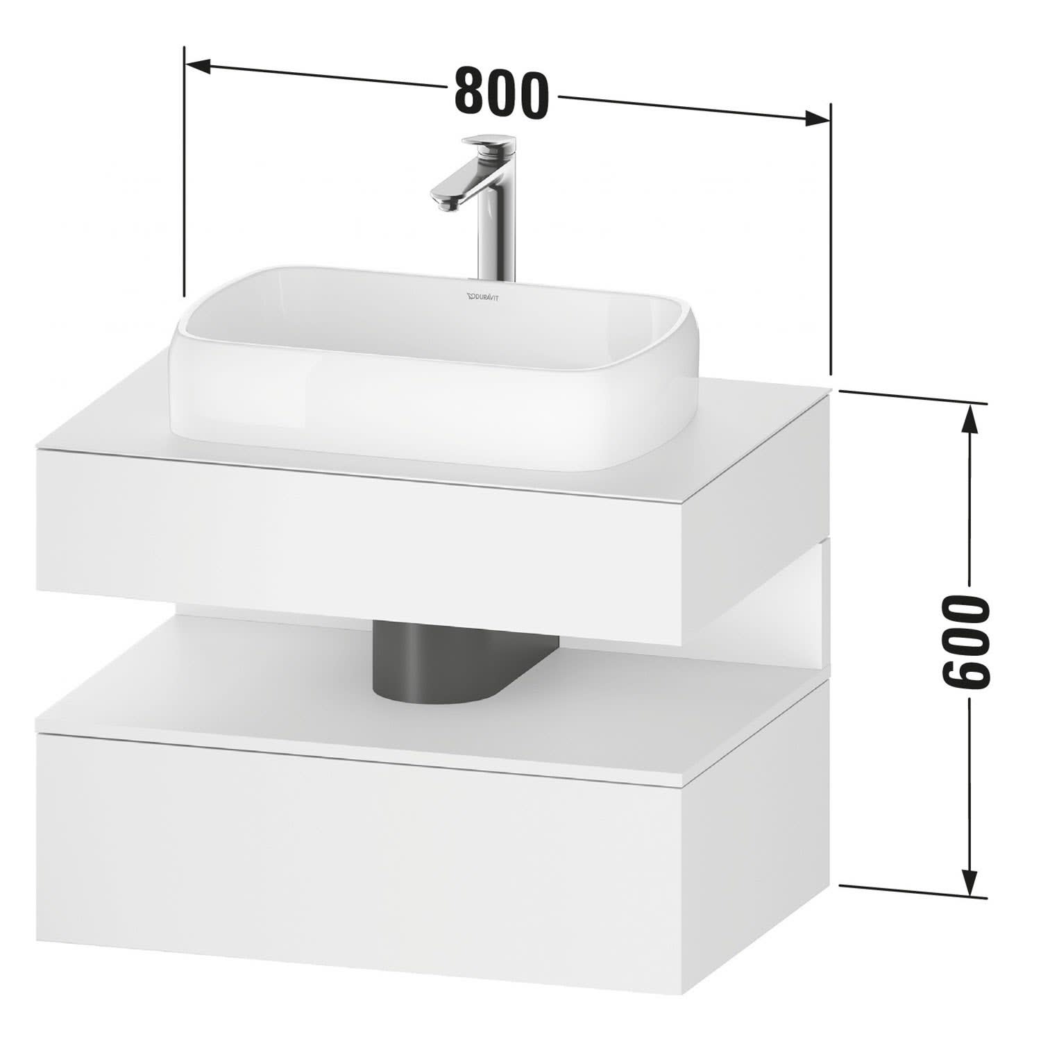 Duravit Qatego Konsolenwaschtischunterbau mit Ausschnitt mittig 80 x 60 cm, 2 Auszüge