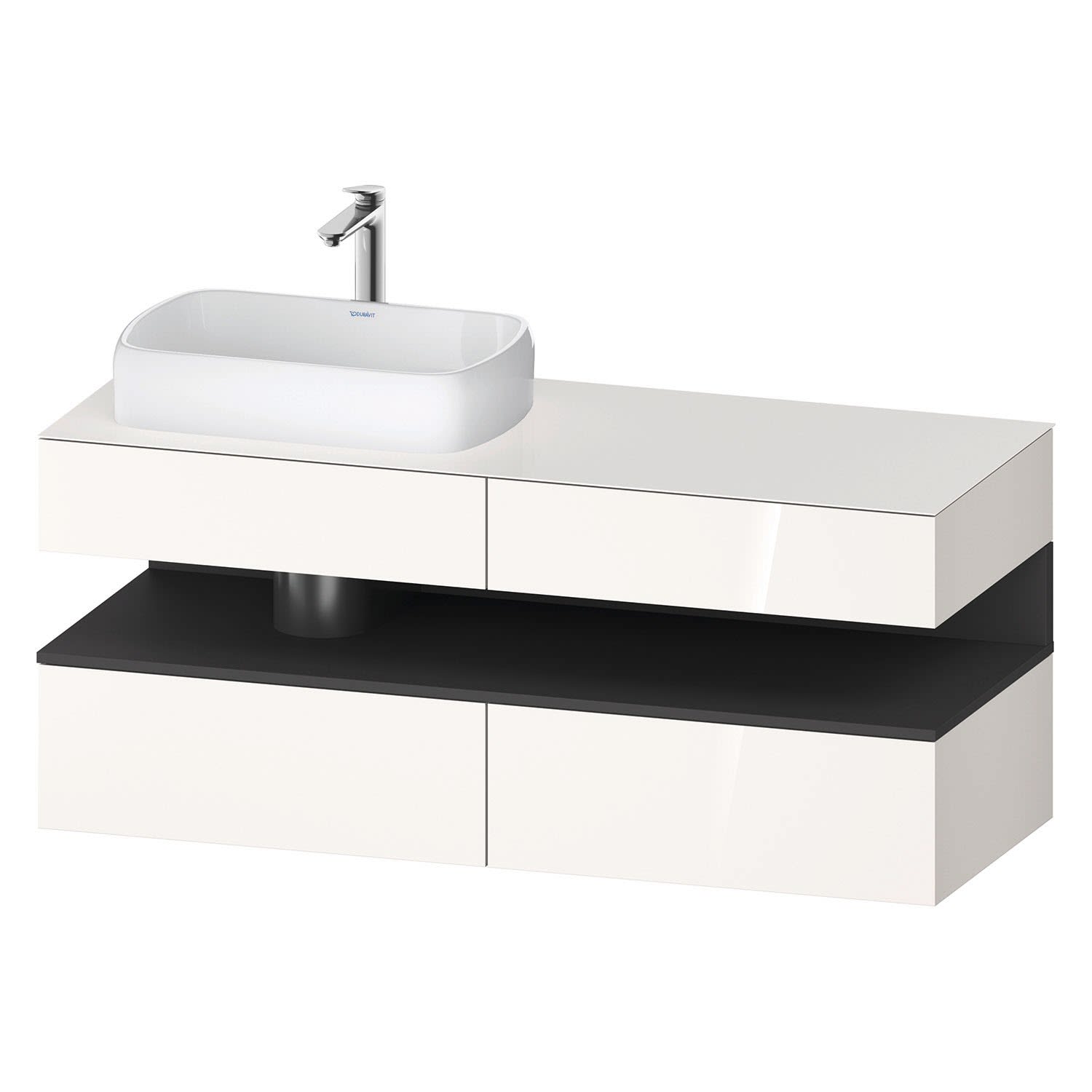 Duravit Qatego Konsolenwaschtischunterbau mit Ausschnitt links 140 x 60 cm, 4 Auszüge