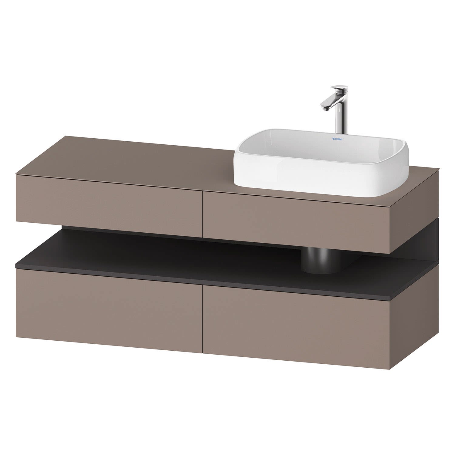 Duravit Qatego Konsolenwaschtischunterbau mit Ausschnitt rechts 140 x 60 cm, 4 Auszüge