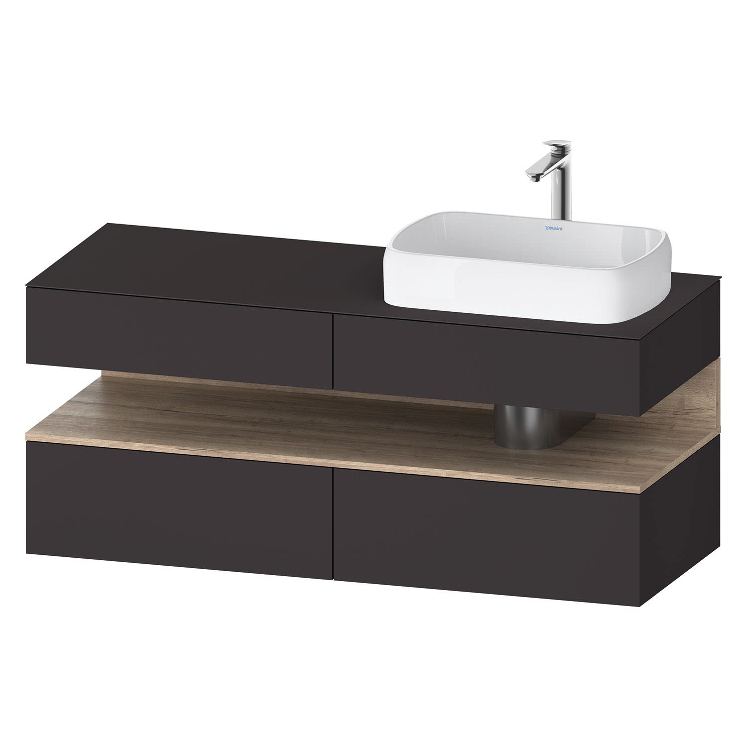 Duravit Qatego Konsolenwaschtischunterbau mit Ausschnitt rechts 140 x 60 cm, 4 Auszüge