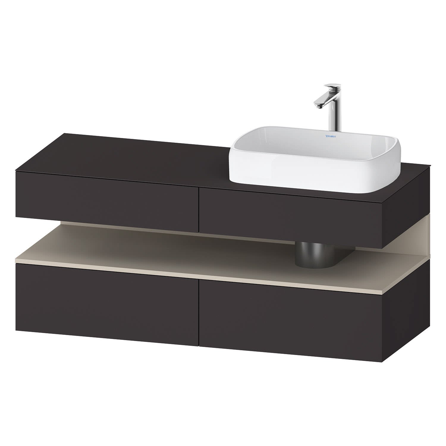 Duravit Qatego Konsolenwaschtischunterbau mit Ausschnitt rechts 140 x 60 cm, 4 Auszüge