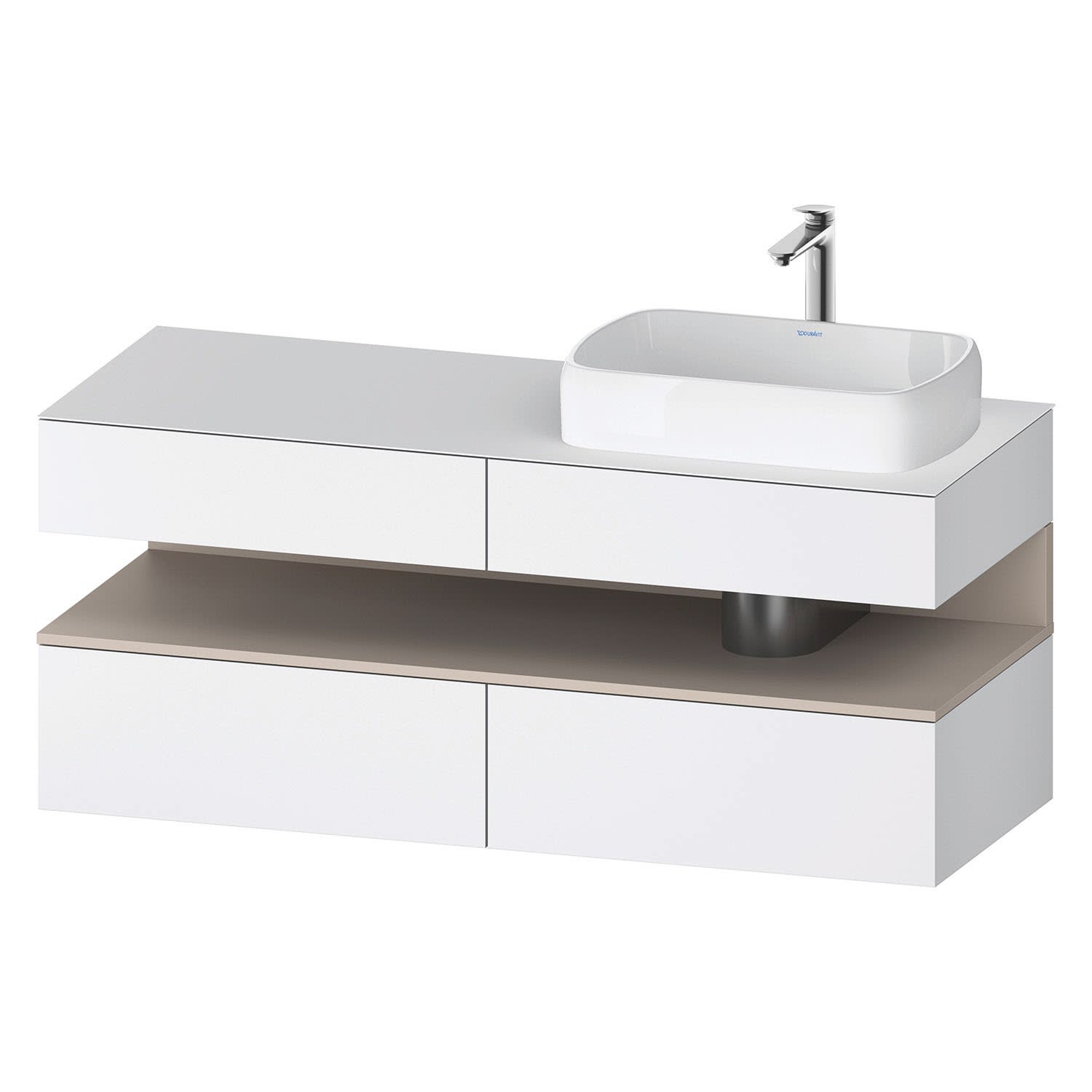 Duravit Qatego Konsolenwaschtischunterbau mit Ausschnitt rechts 140 x 60 cm, 4 Auszüge