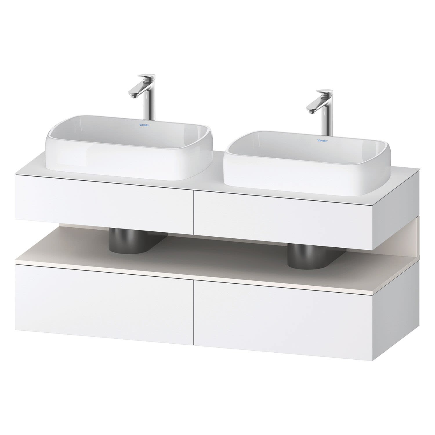 Duravit Qatego Konsolenwaschtischunterbau mit zwei Ausschnitten 140 x 60 cm, 4 Auszüge