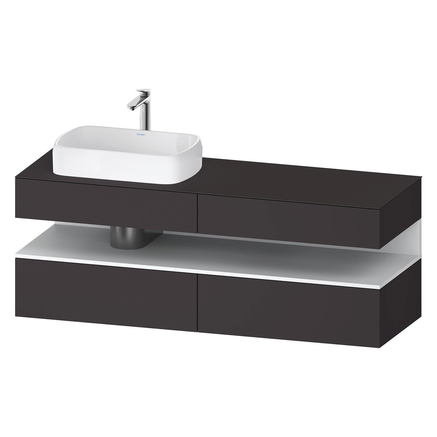 Duravit Qatego Konsolenwaschtischunterbau mit Ausschnitt links 160 x 60 cm, 4 Auszüge