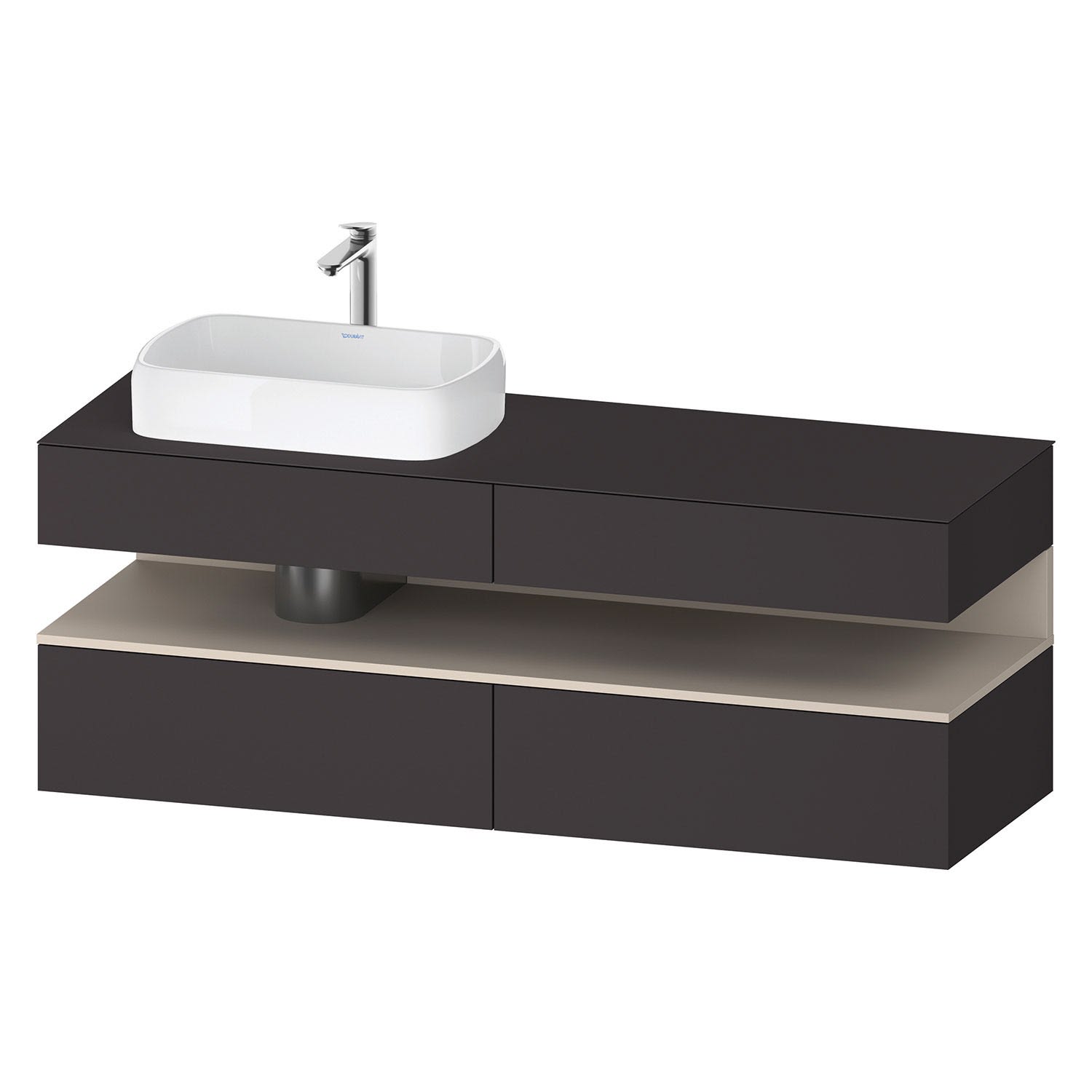 Duravit Qatego Konsolenwaschtischunterbau mit Ausschnitt links 160 x 60 cm, 4 Auszüge