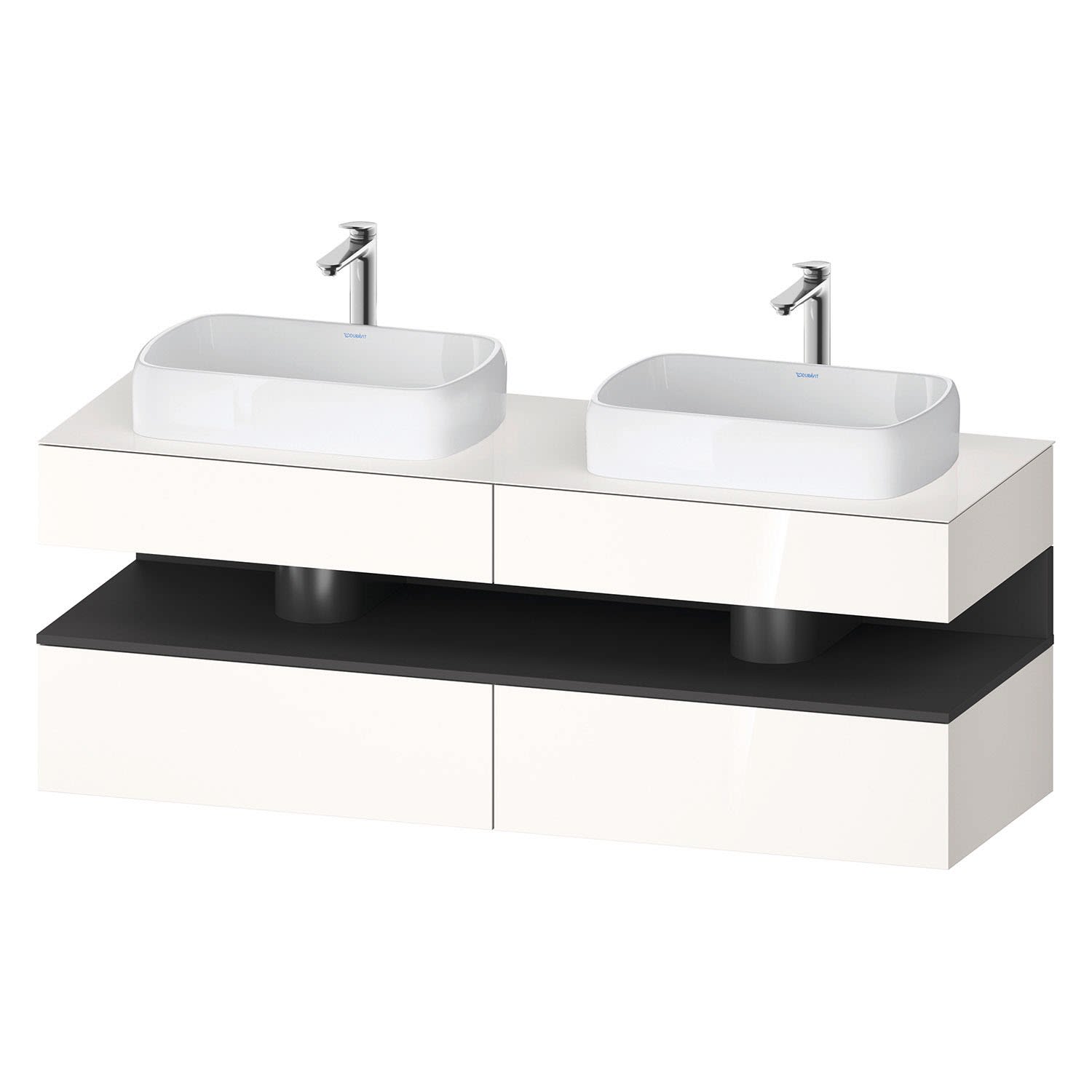 Duravit Qatego Konsolenwaschtischunterbau mit zwei Ausschnitten 160 x 60 cm, 4 Auszüge