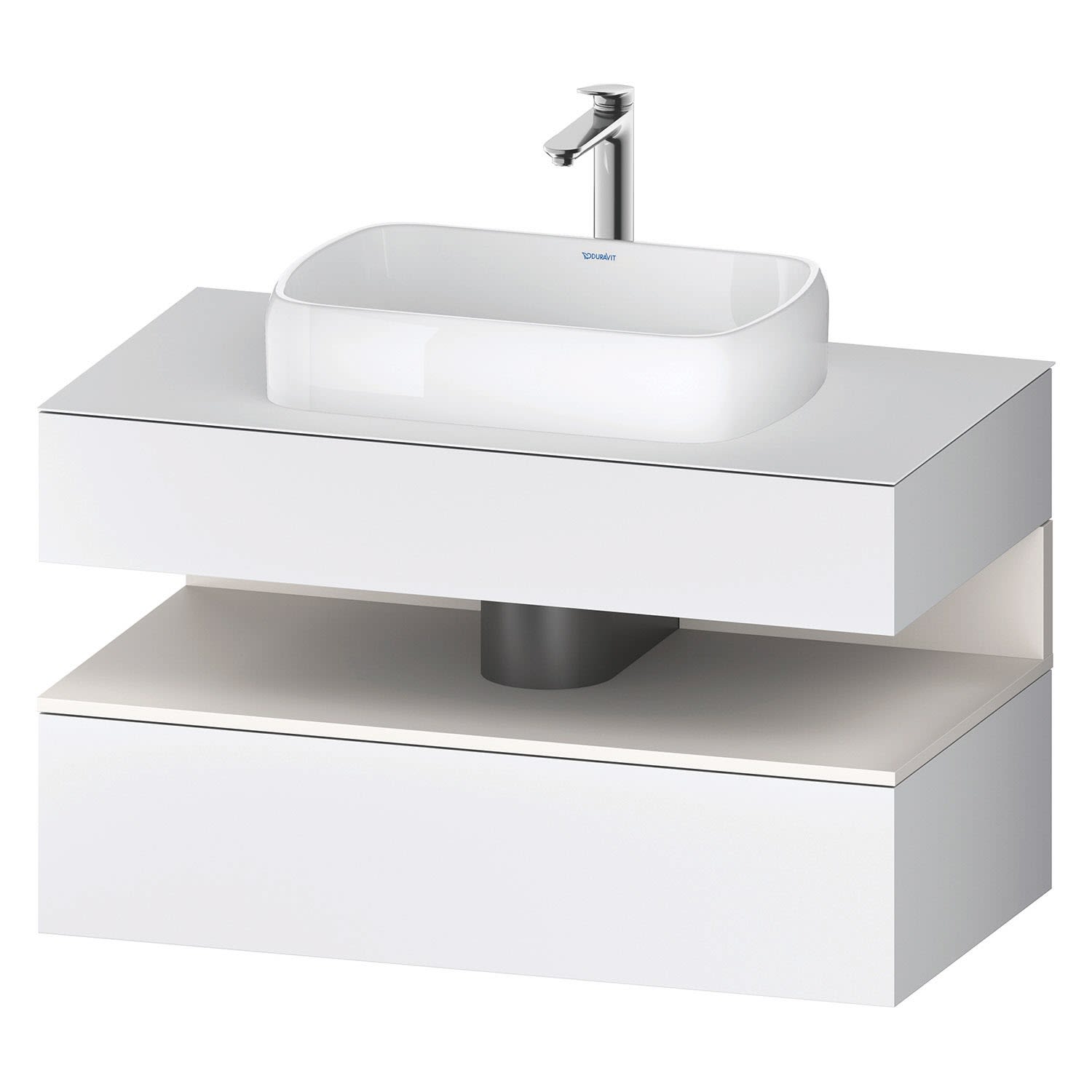 Duravit Qatego Konsolenwaschtischunterbau mit Ausschnitt mittig 100 x 60 cm, 2 Auszüge, mit LED Beleuchtung