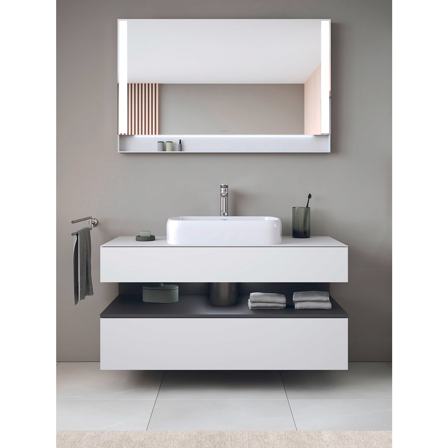 Duravit Qatego Konsolenwaschtischunterbau mit Ausschnitt mittig 120 x 60 cm, 2 Auszüge, mit LED Beleuchtung