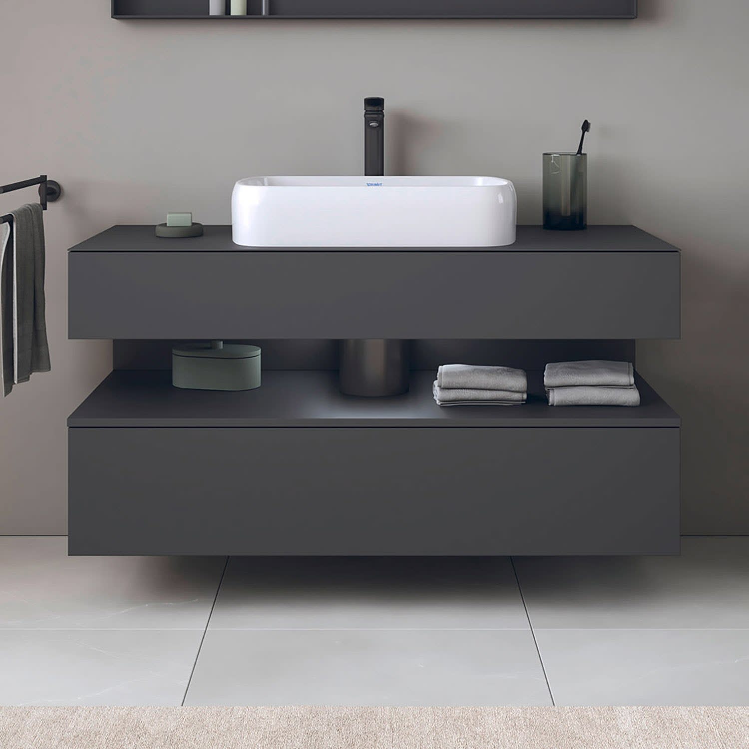 - mit Siphonschürze aus Stahlblech geformt in anthrazit