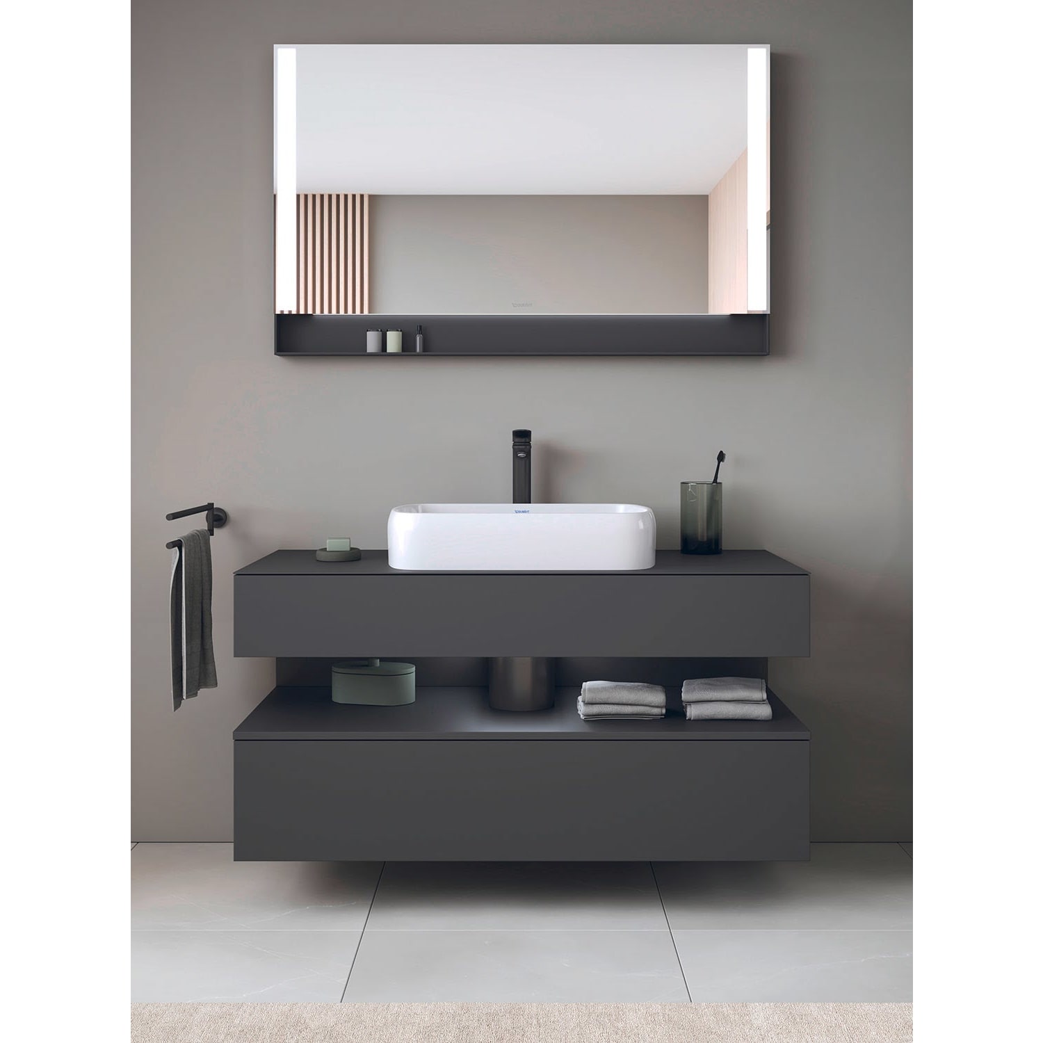 Duravit Qatego Konsolenwaschtischunterbau mit Ausschnitt mittig 120 x 60 cm, 2 Auszüge, mit LED Beleuchtung