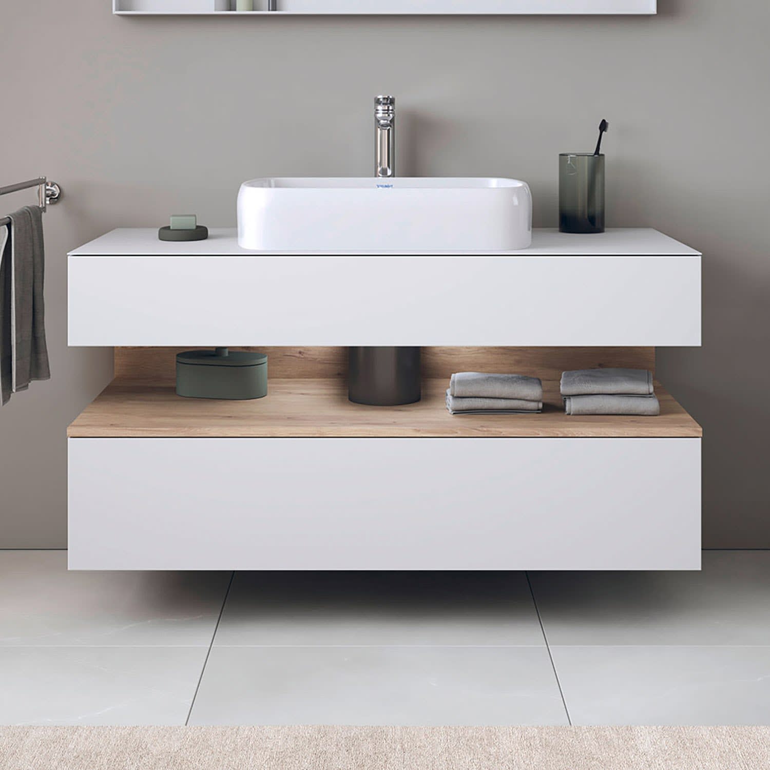 Duravit Qatego Konsolenwaschtischunterbau mit Ausschnitt mittig 120 x 60 cm, 2 Auszüge, mit LED Beleuchtung