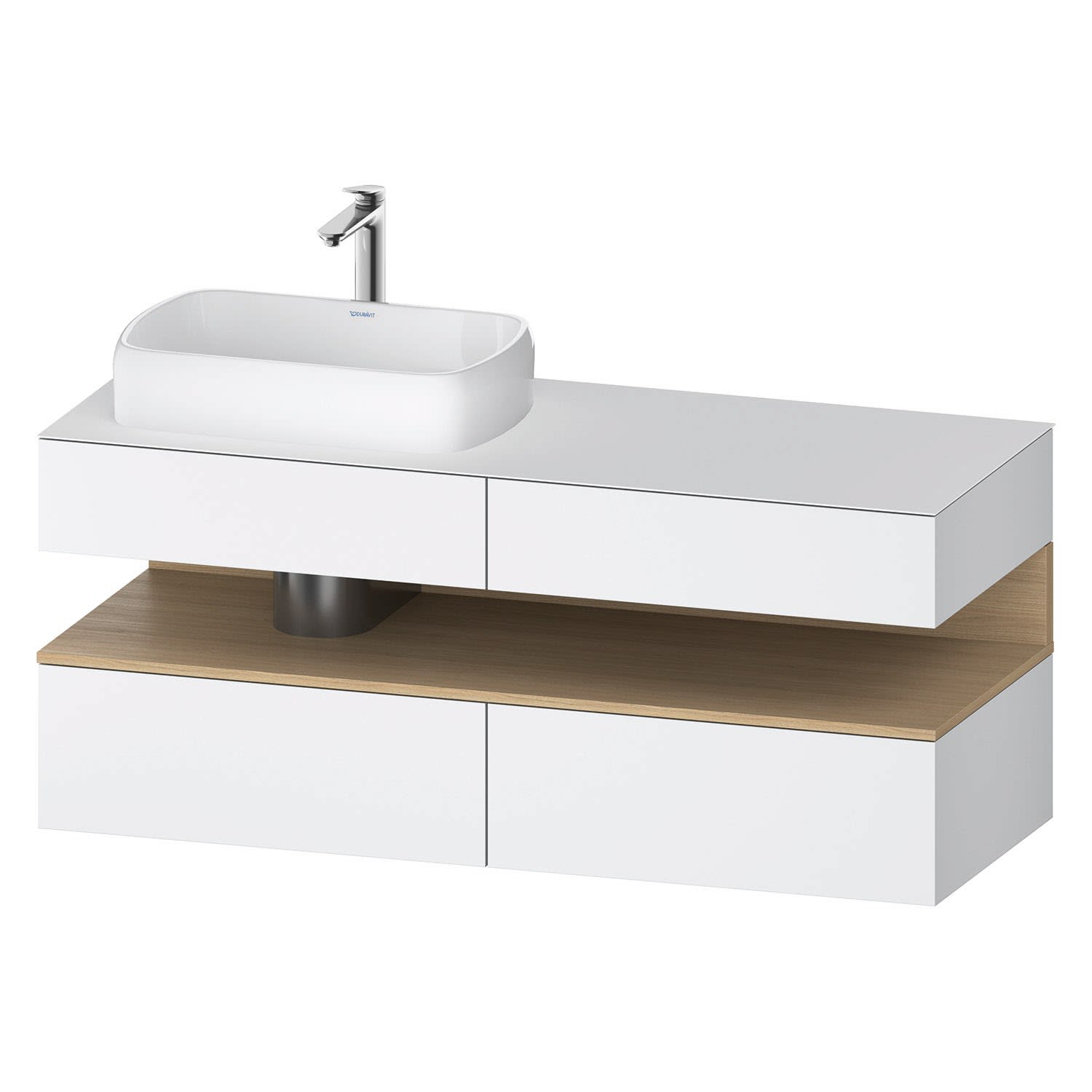 Duravit Qatego Konsolenwaschtischunterbau mit Ausschnitt links 140 x 60 cm, 4 Auszüge, mit LED Beleuchtung