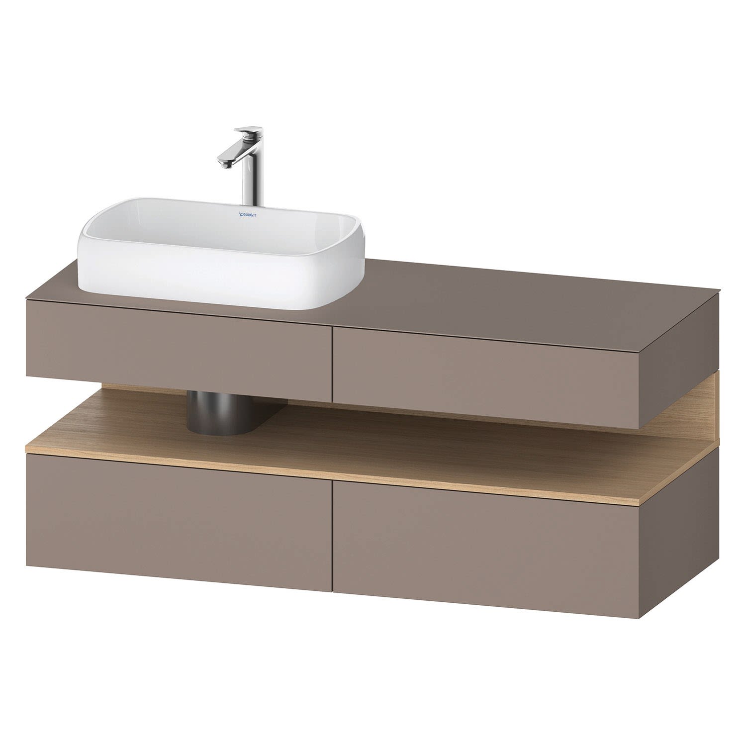 Duravit Qatego Konsolenwaschtischunterbau mit Ausschnitt links 140 x 60 cm, 4 Auszüge, mit LED Beleuchtung