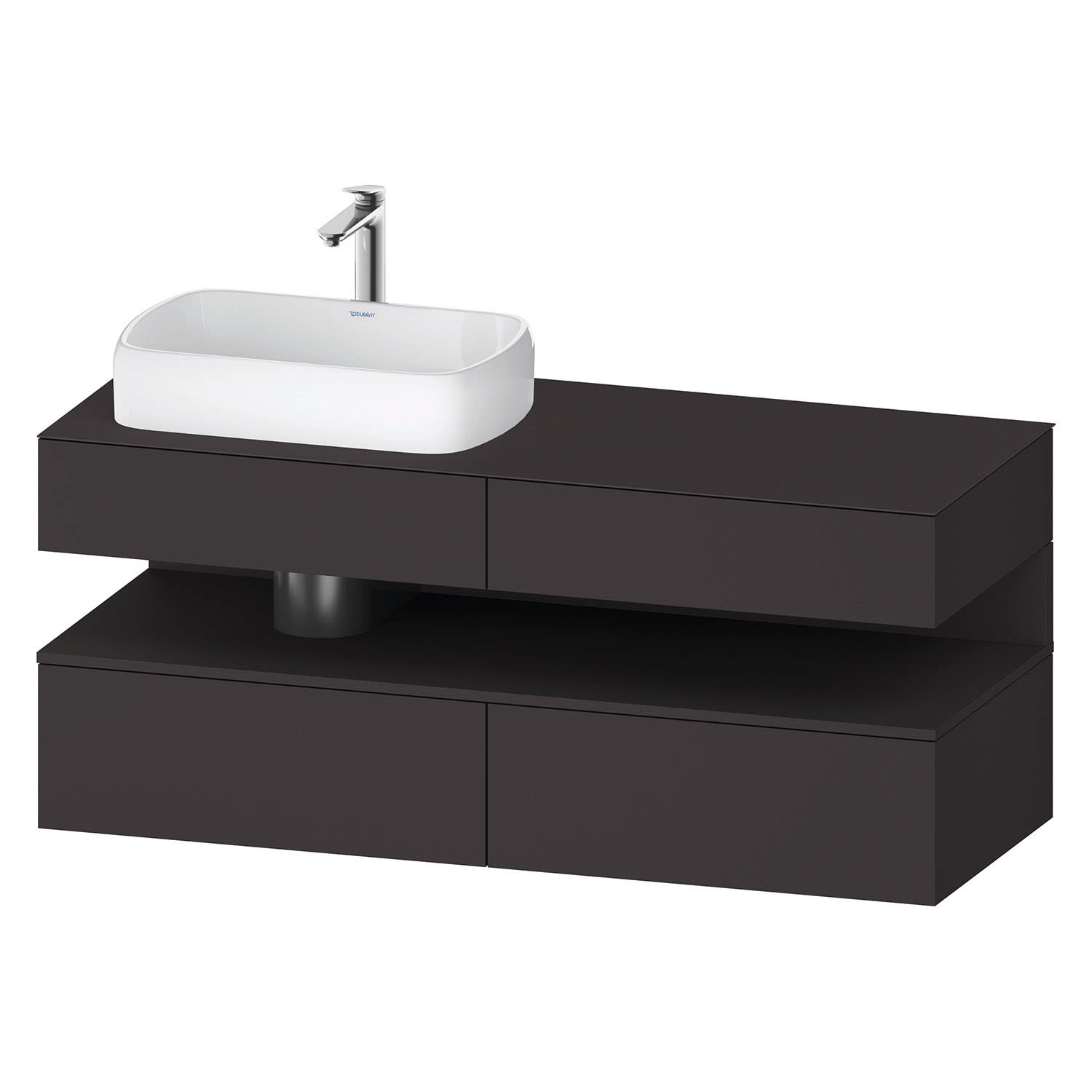 Duravit Qatego Konsolenwaschtischunterbau mit Ausschnitt links 140 x 60 cm, 4 Auszüge, mit LED Beleuchtung