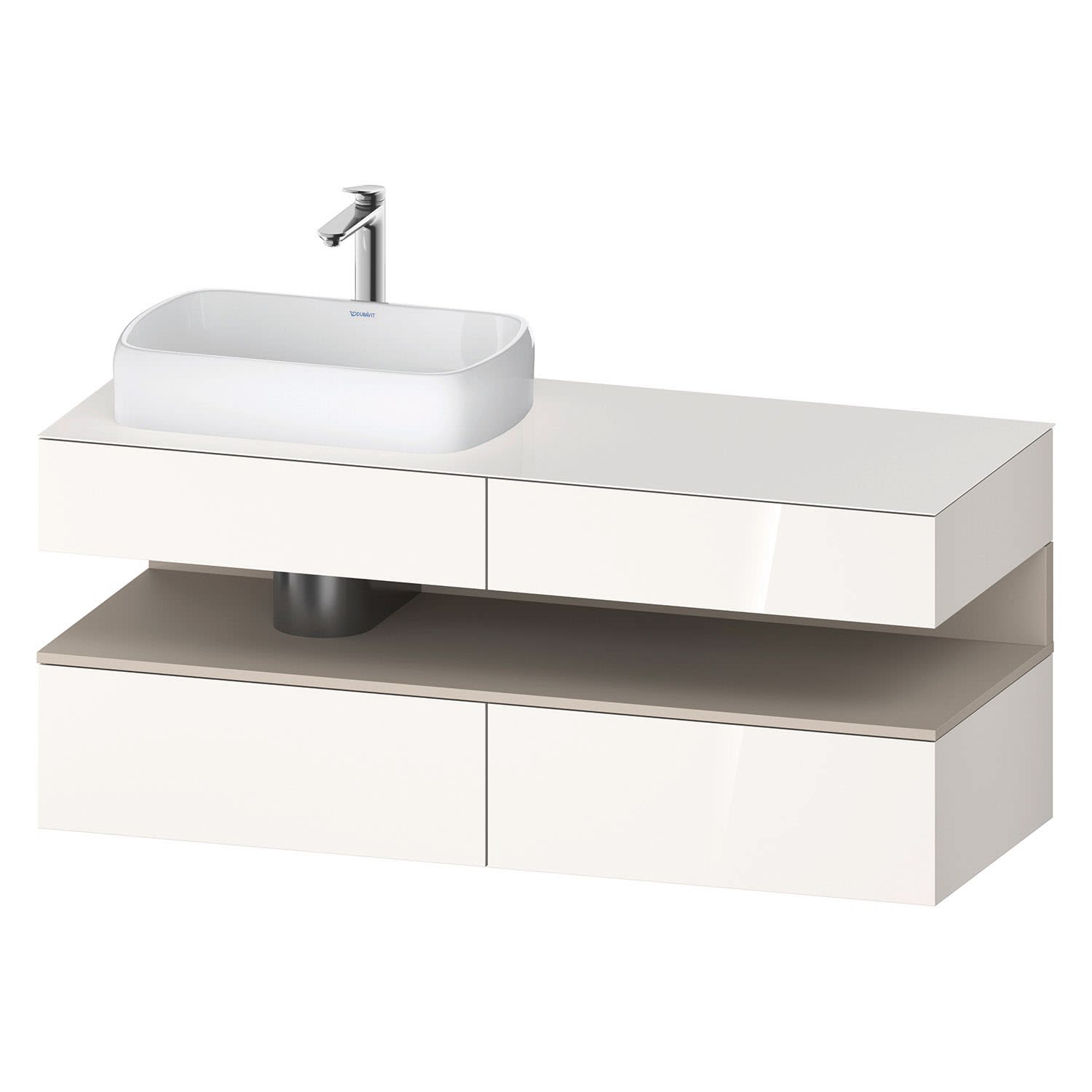 Duravit Qatego Konsolenwaschtischunterbau mit Ausschnitt links 140 x 60 cm, 4 Auszüge, mit LED Beleuchtung