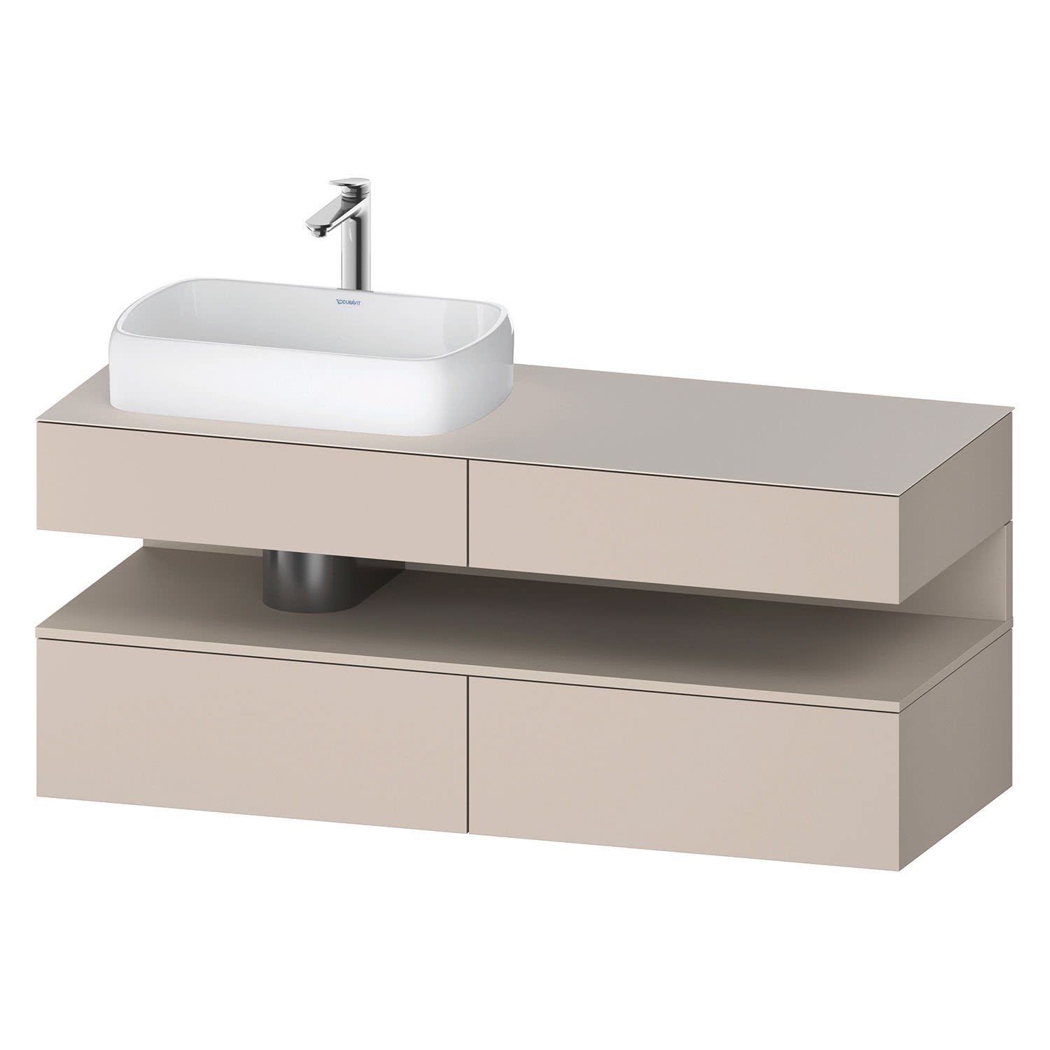 Duravit Qatego Konsolenwaschtischunterbau mit Ausschnitt links 140 x 60 cm, 4 Auszüge, mit LED Beleuchtung