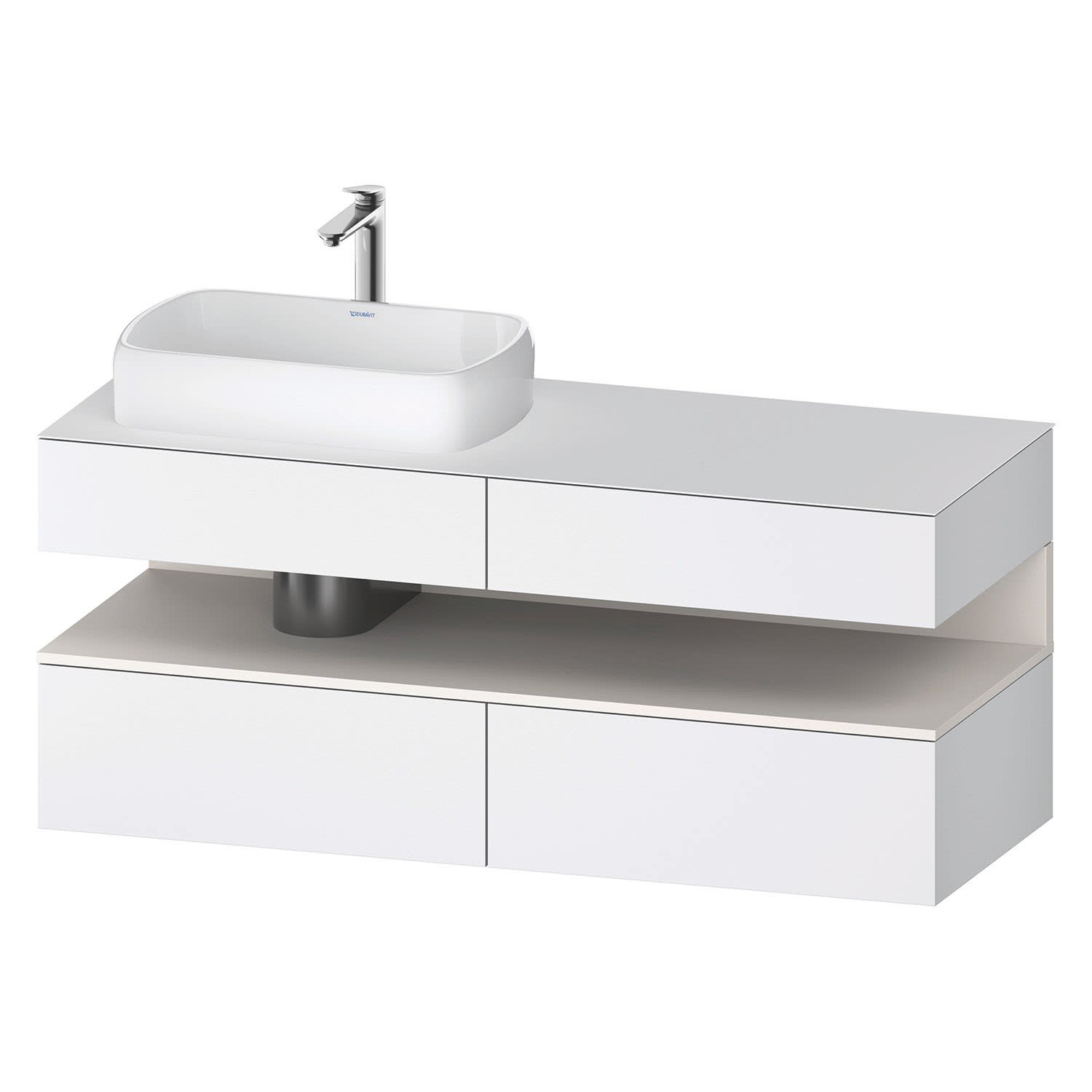 Duravit Qatego Konsolenwaschtischunterbau mit Ausschnitt links 140 x 60 cm, 4 Auszüge, mit LED Beleuchtung