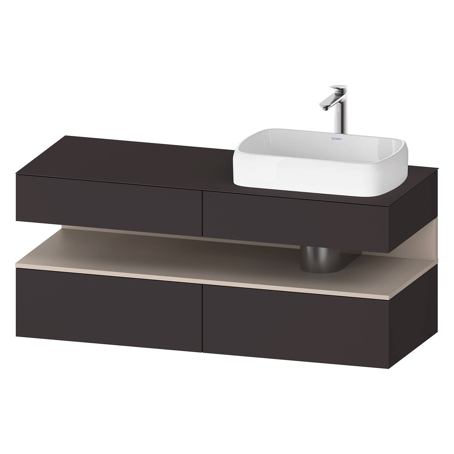 Duravit Qatego Konsolenwaschtischunterbau mit Ausschnitt rechts 140 x 60 cm, 4 Auszüge, mit LED Beleuchtung