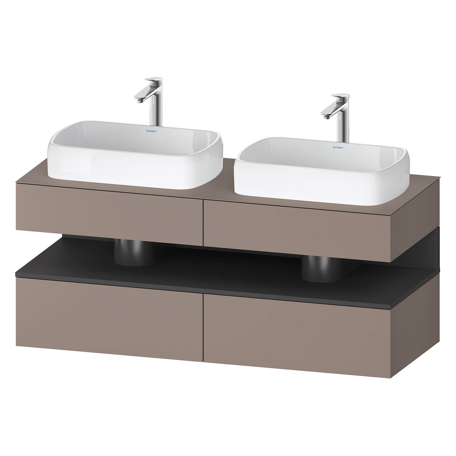 Duravit Qatego Konsolenwaschtischunterbau mit zwei Ausschnitten 140 x 60 cm, 4 Auszüge, mit LED Beleuchtung