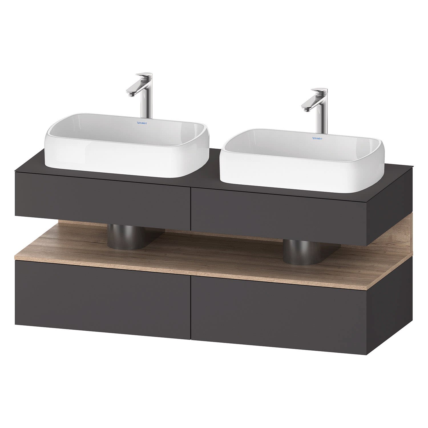 Duravit Qatego Konsolenwaschtischunterbau mit zwei Ausschnitten 140 x 60 cm, 4 Auszüge, mit LED Beleuchtung