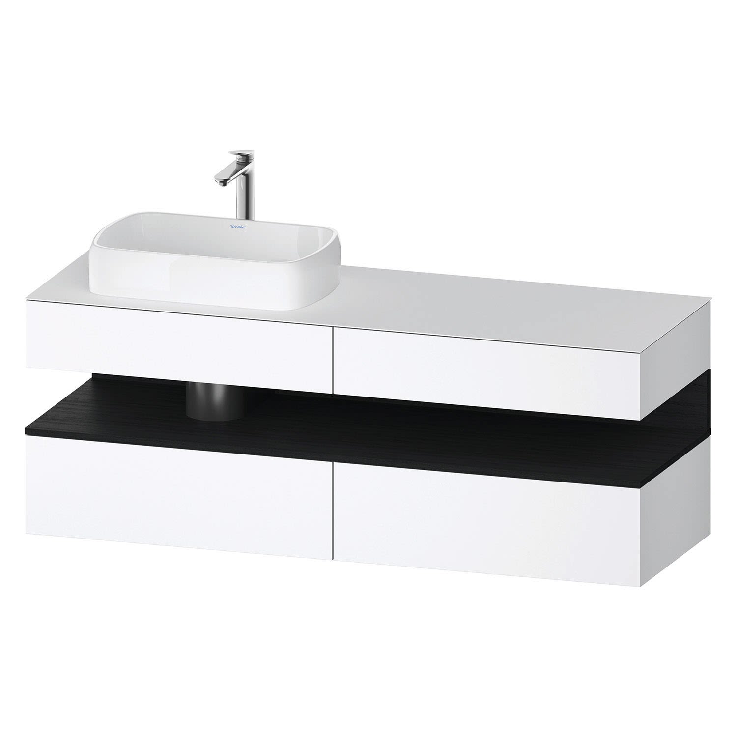 Duravit Qatego Konsolenwaschtischunterbau mit Ausschnitt links 160 x 60 cm, 4 Auszüge, mit LED Beleuchtung