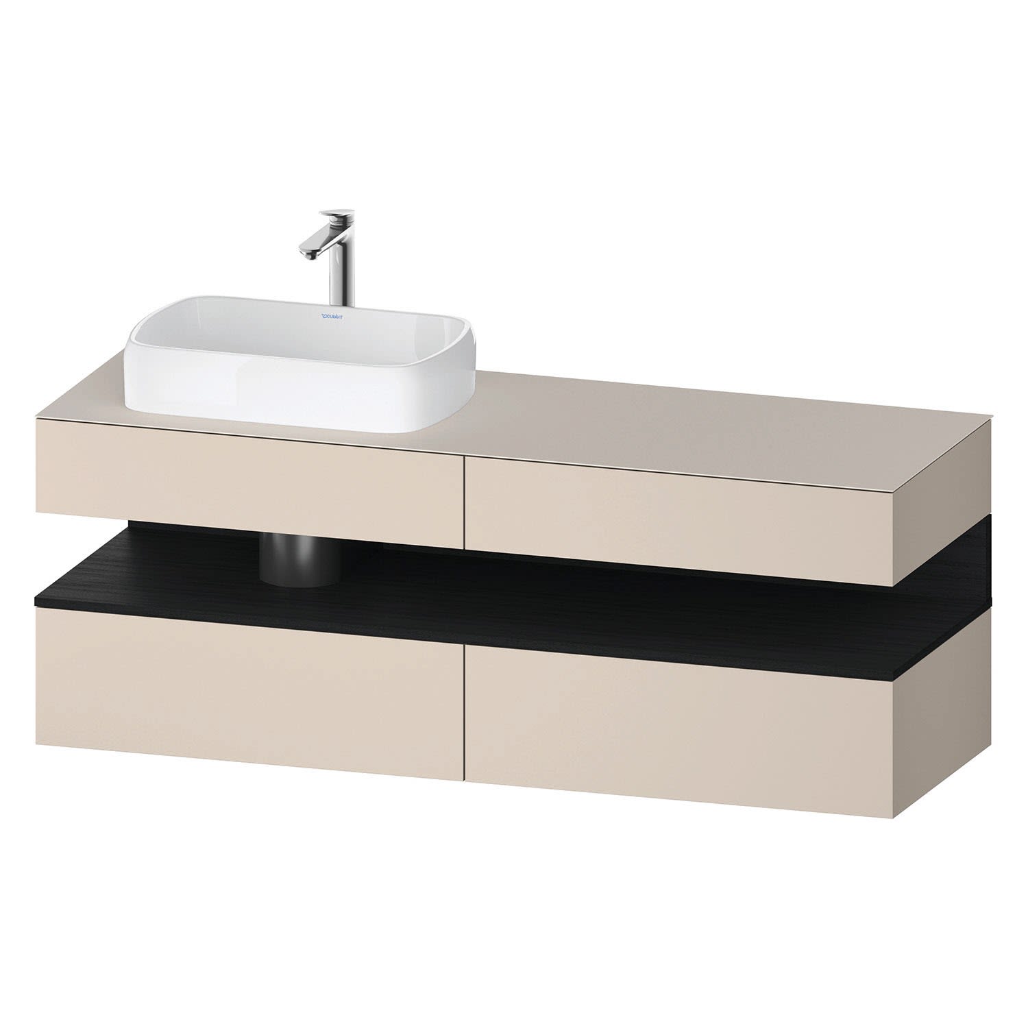 Duravit Qatego Konsolenwaschtischunterbau mit Ausschnitt links 160 x 60 cm, 4 Auszüge, mit LED Beleuchtung