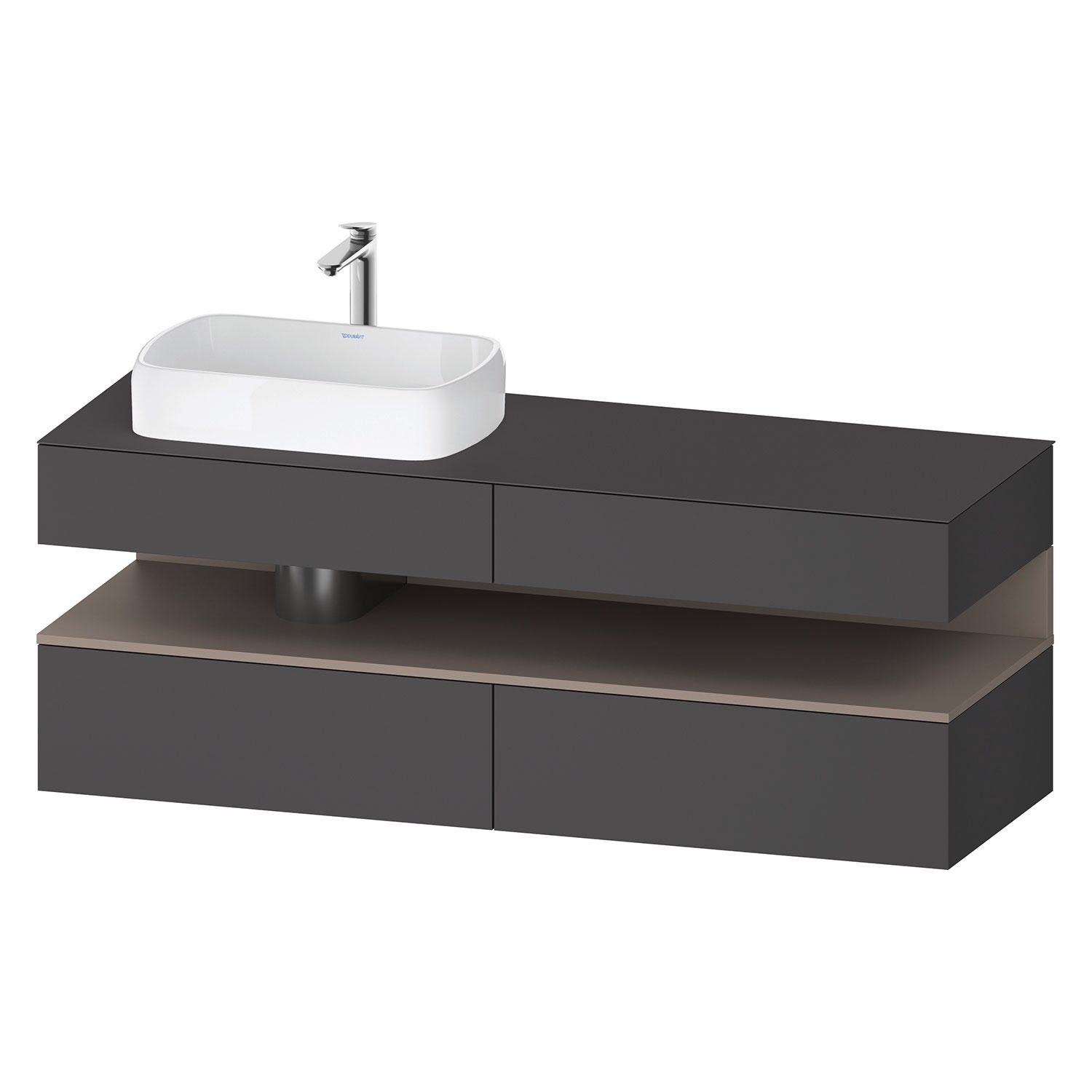 Duravit Qatego Konsolenwaschtischunterbau mit Ausschnitt links 160 x 60 cm, 4 Auszüge, mit LED Beleuchtung