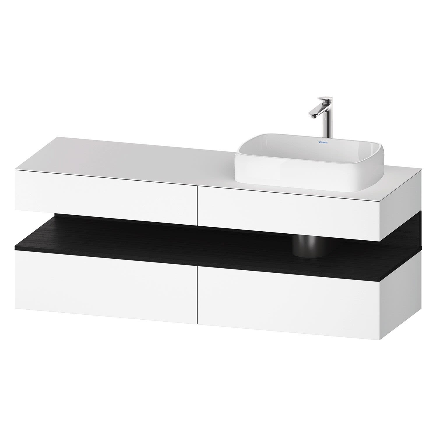 Duravit Qatego Konsolenwaschtischunterbau mit Ausschnitt rechts 160 x 60 cm, 4 Auszüge, mit LED Beleuchtung