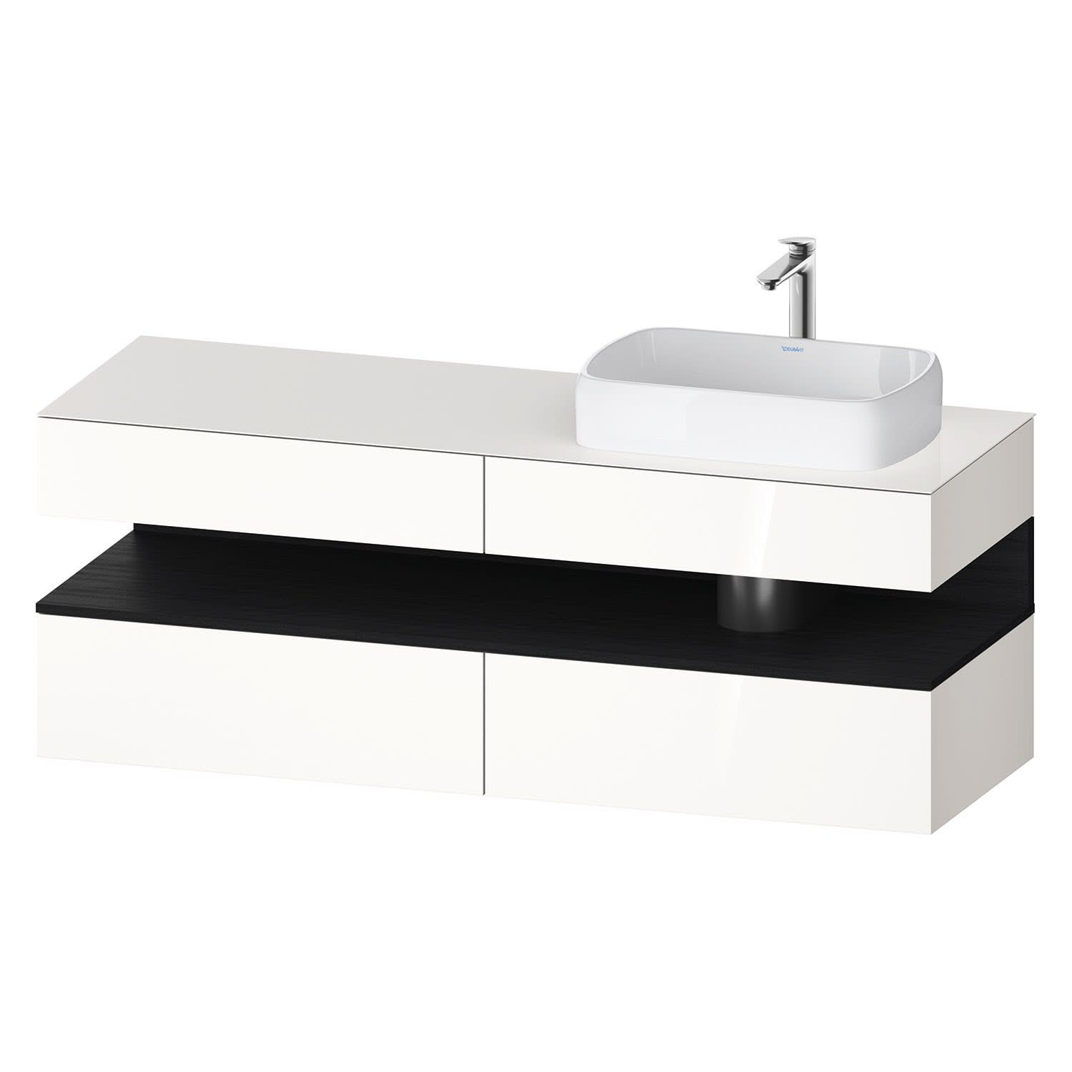 Duravit Qatego Konsolenwaschtischunterbau mit Ausschnitt rechts 160 x 60 cm, 4 Auszüge, mit LED Beleuchtung