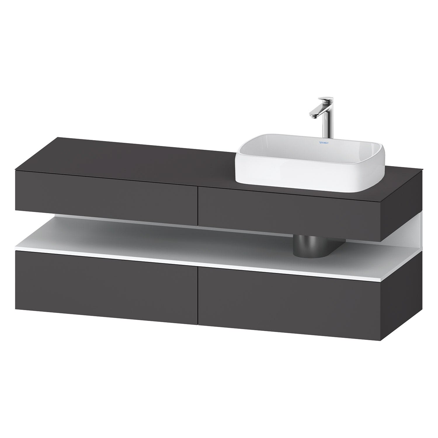Duravit Qatego Konsolenwaschtischunterbau mit Ausschnitt rechts 160 x 60 cm, 4 Auszüge, mit LED Beleuchtung