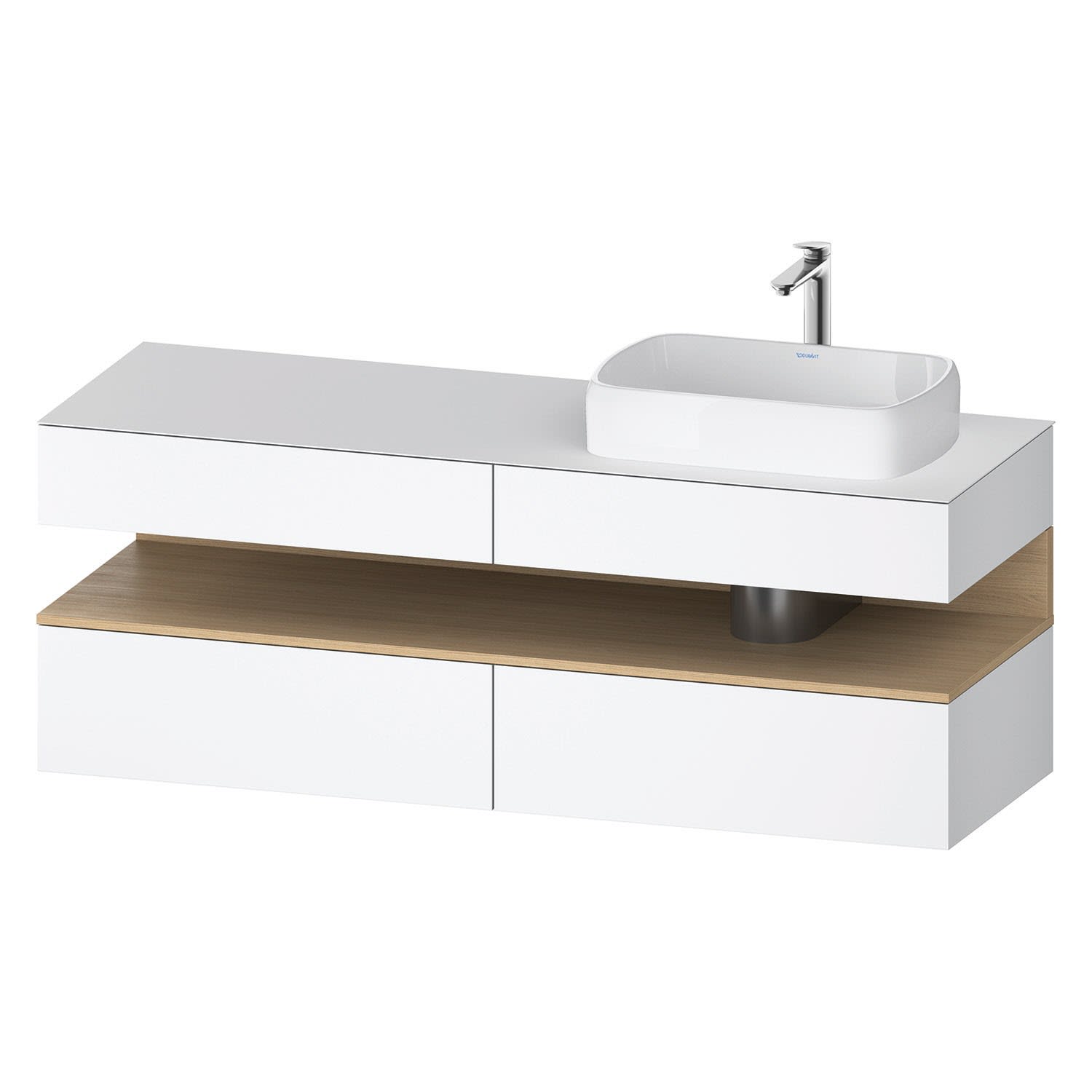 Duravit Qatego Konsolenwaschtischunterbau mit Ausschnitt rechts 160 x 60 cm, 4 Auszüge, mit LED Beleuchtung