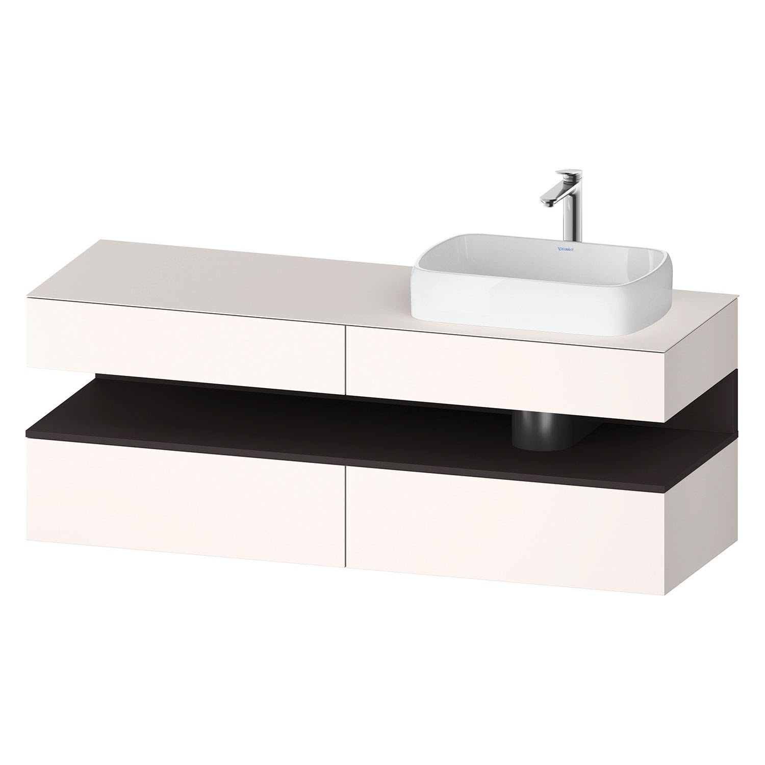 Duravit Qatego Konsolenwaschtischunterbau mit Ausschnitt rechts 160 x 60 cm, 4 Auszüge, mit LED Beleuchtung