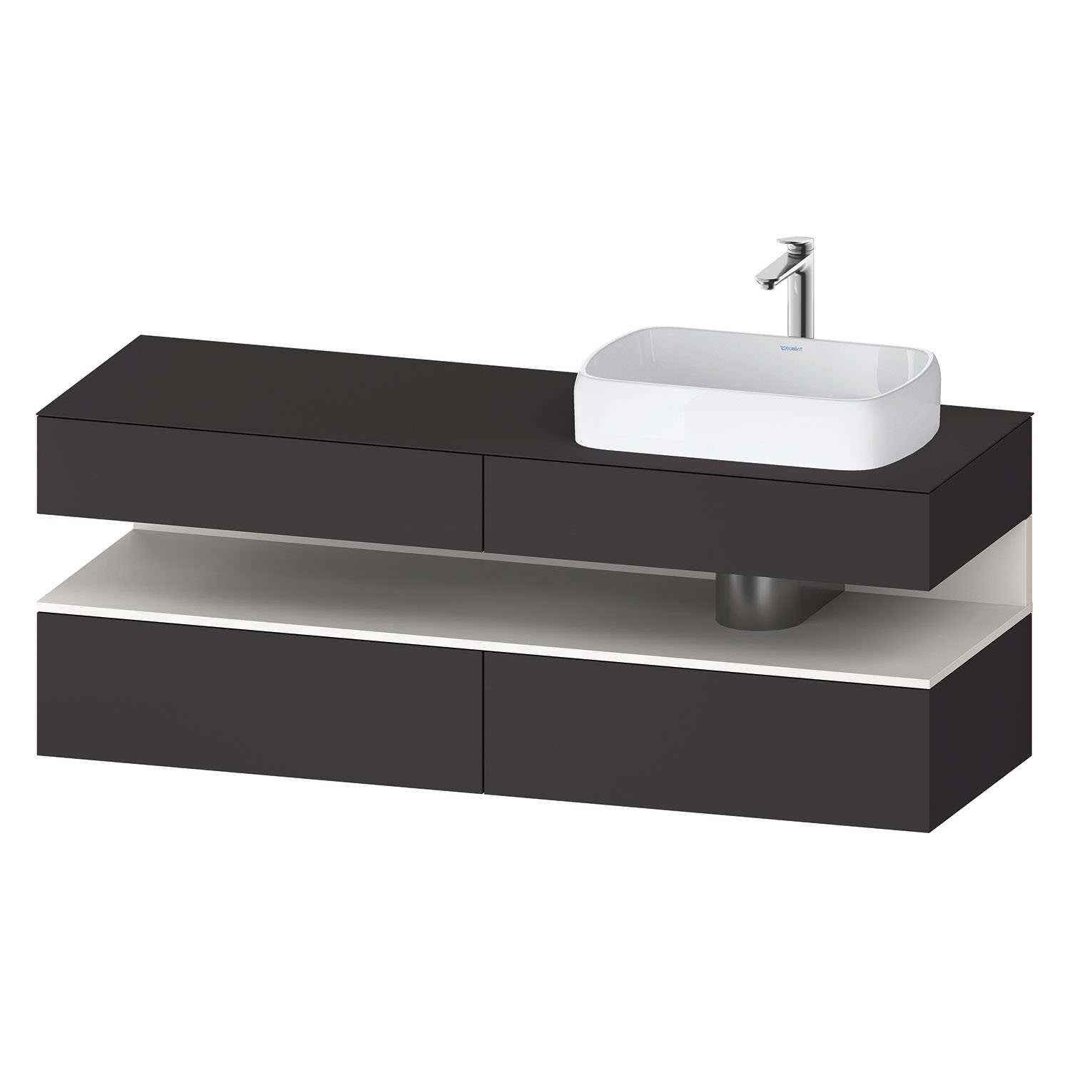 Duravit Qatego Konsolenwaschtischunterbau mit Ausschnitt rechts 160 x 60 cm, 4 Auszüge, mit LED Beleuchtung