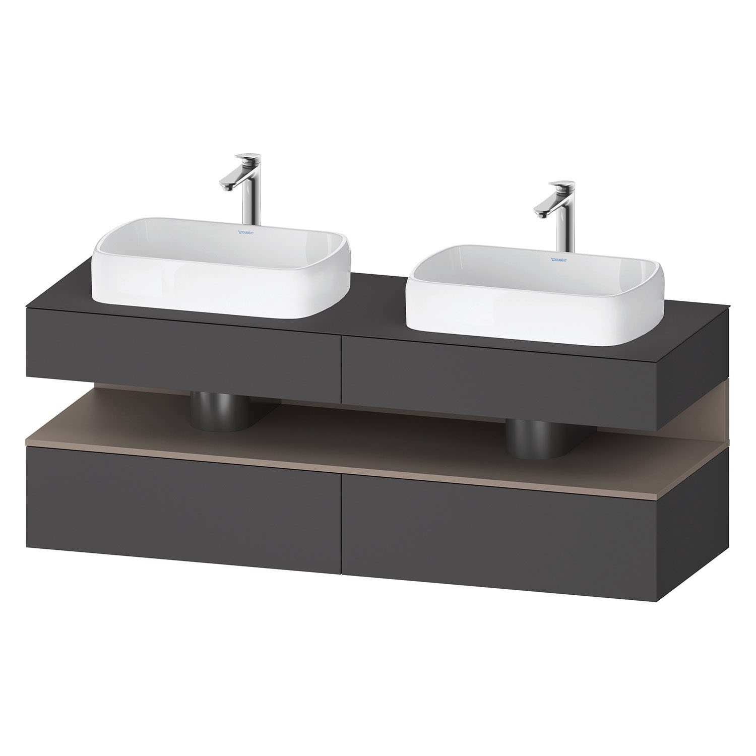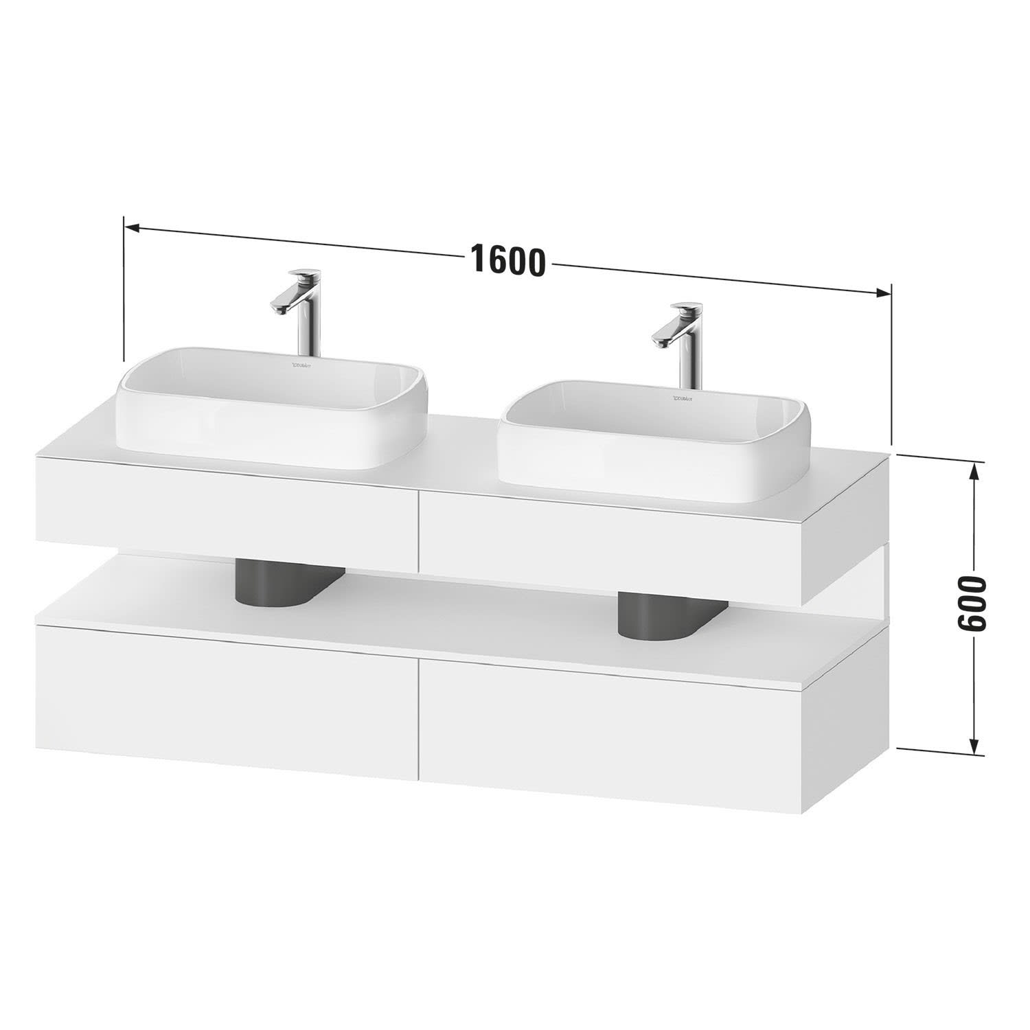 Duravit Qatego Konsolenwaschtischunterbau mit zwei Ausschnitten 160 x 60 cm, 4 Auszüge, mit LED Beleuchtung
