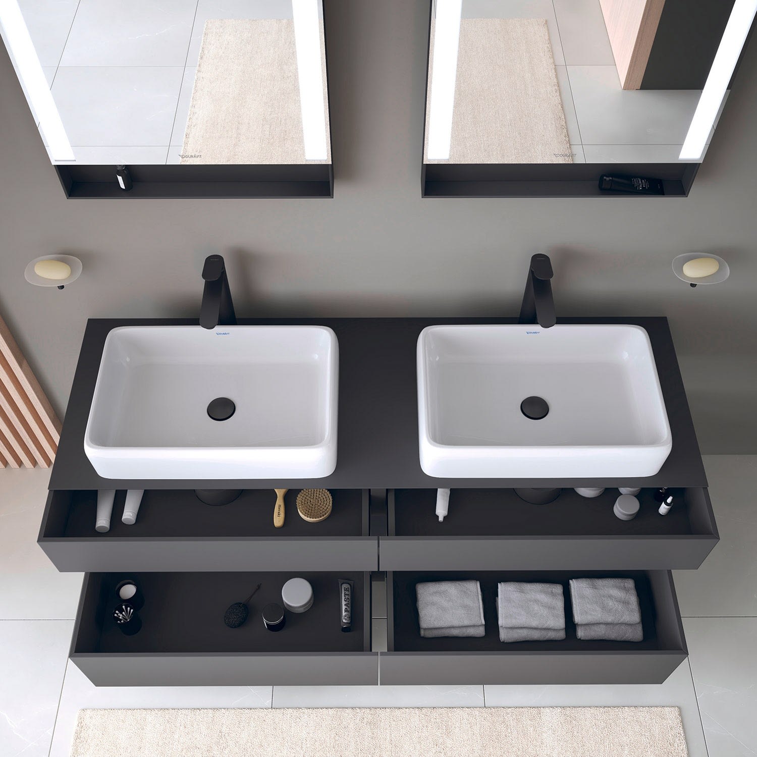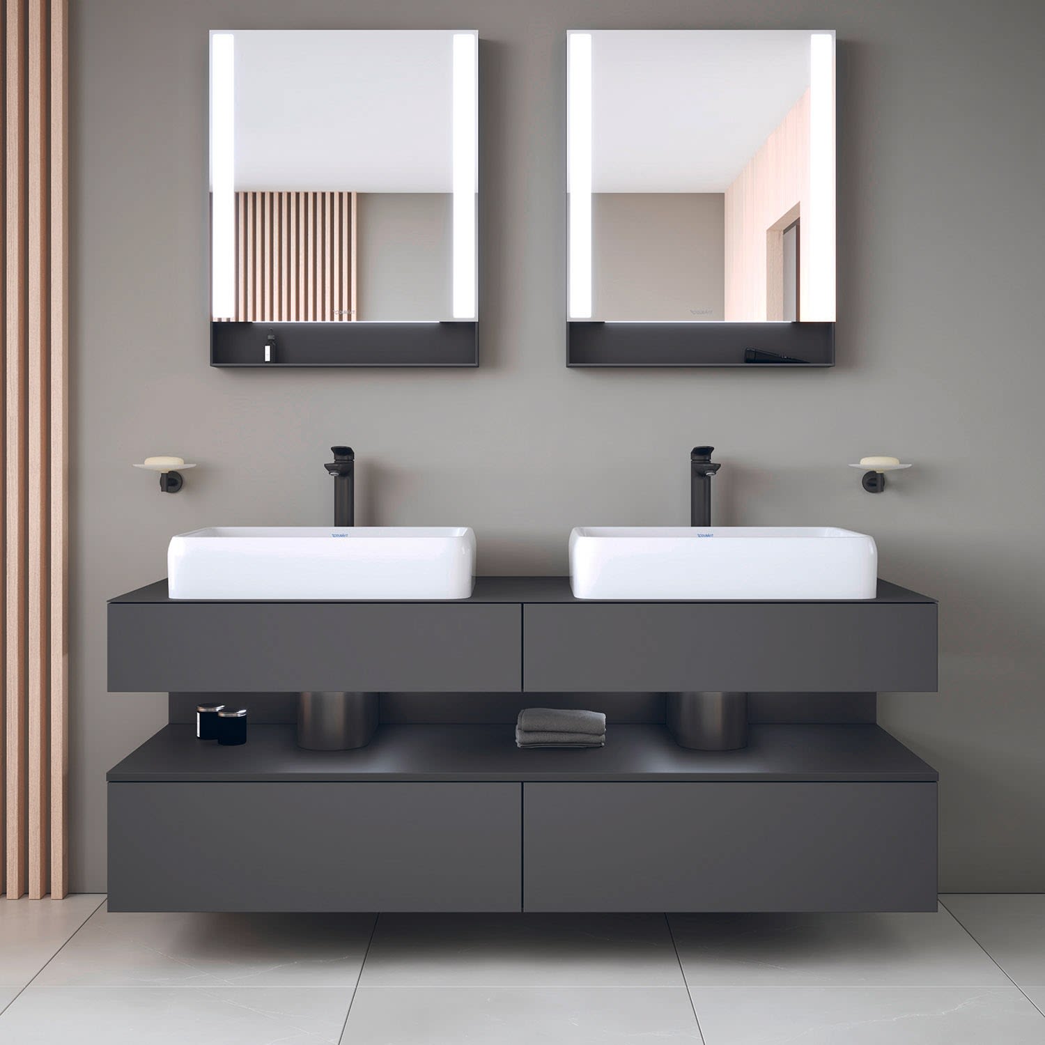 Duravit Qatego Konsolenwaschtischunterbau mit zwei Ausschnitten 160 x 60 cm, 4 Auszüge, mit LED Beleuchtung
