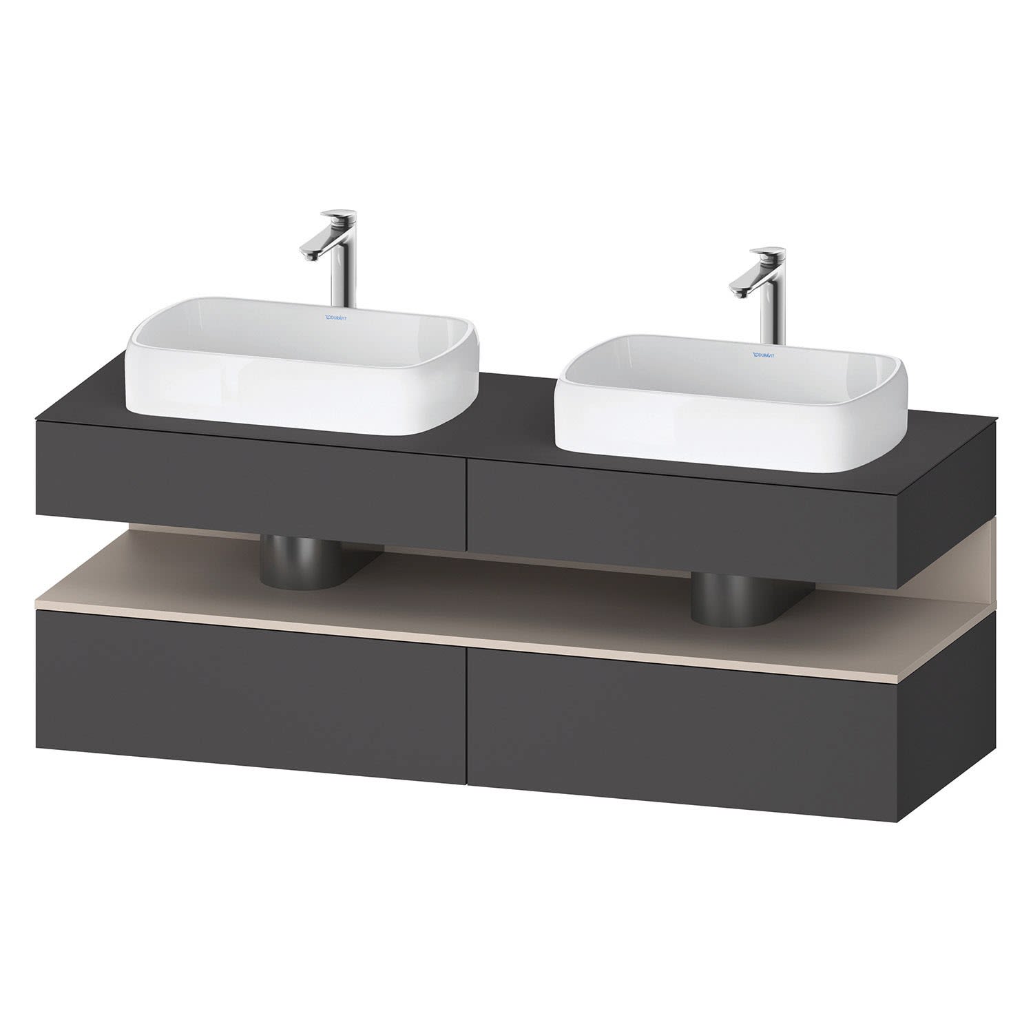 Duravit Qatego Konsolenwaschtischunterbau mit zwei Ausschnitten 160 x 60 cm, 4 Auszüge, mit LED Beleuchtung