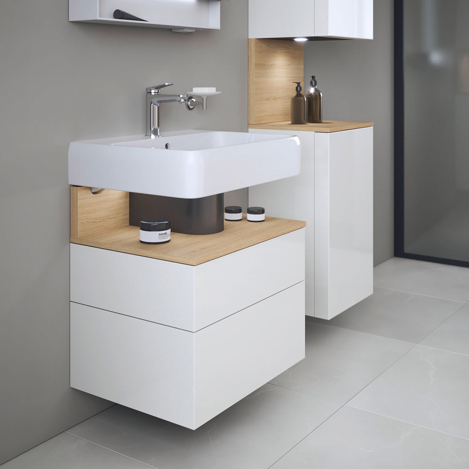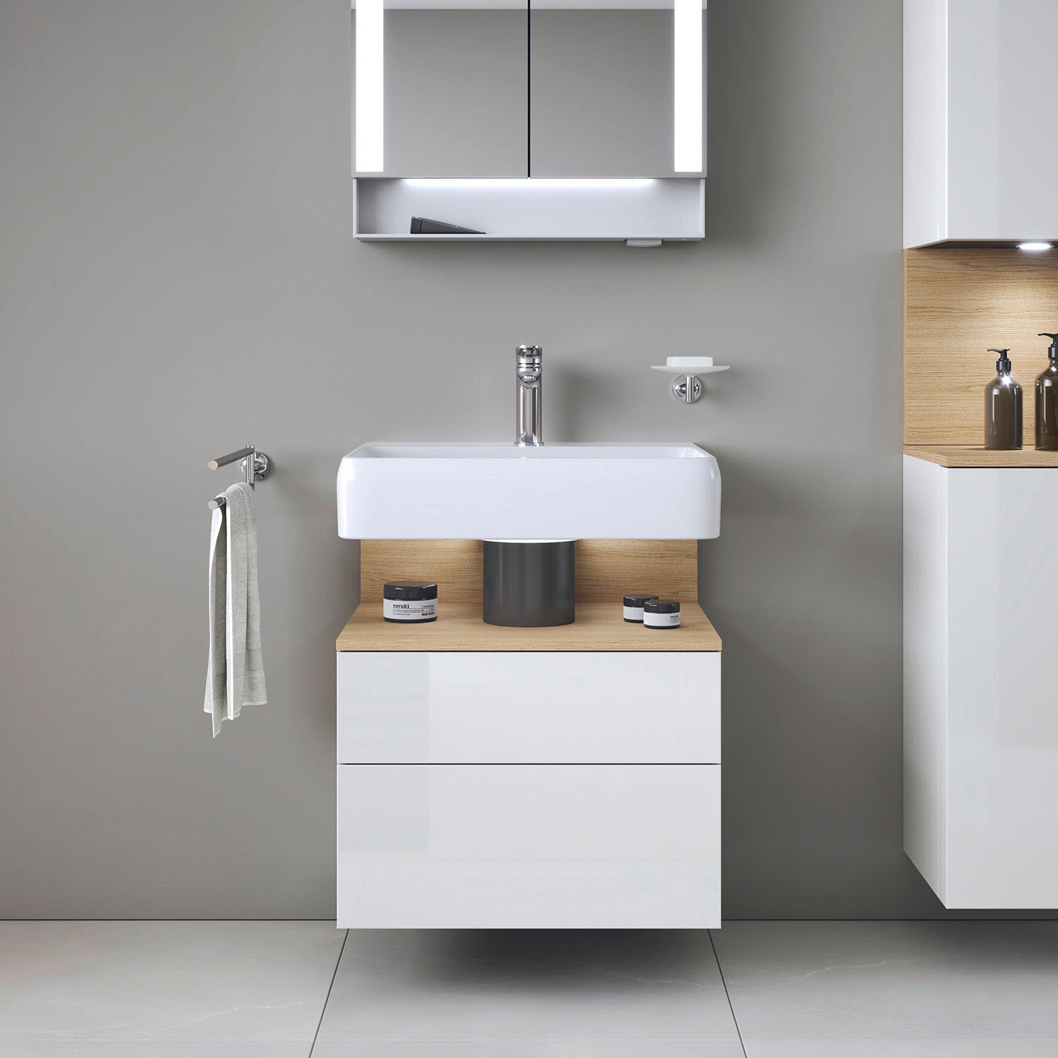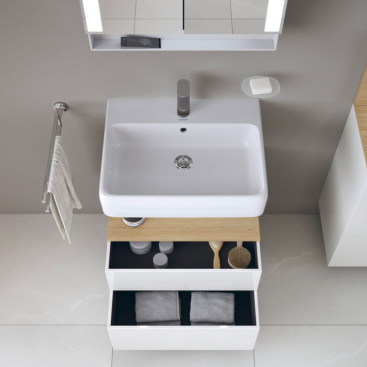 Duravit Qatego Waschtischunterschrank 59 x 59 cm, 2 Auszüge, mit LED Beleuchtung