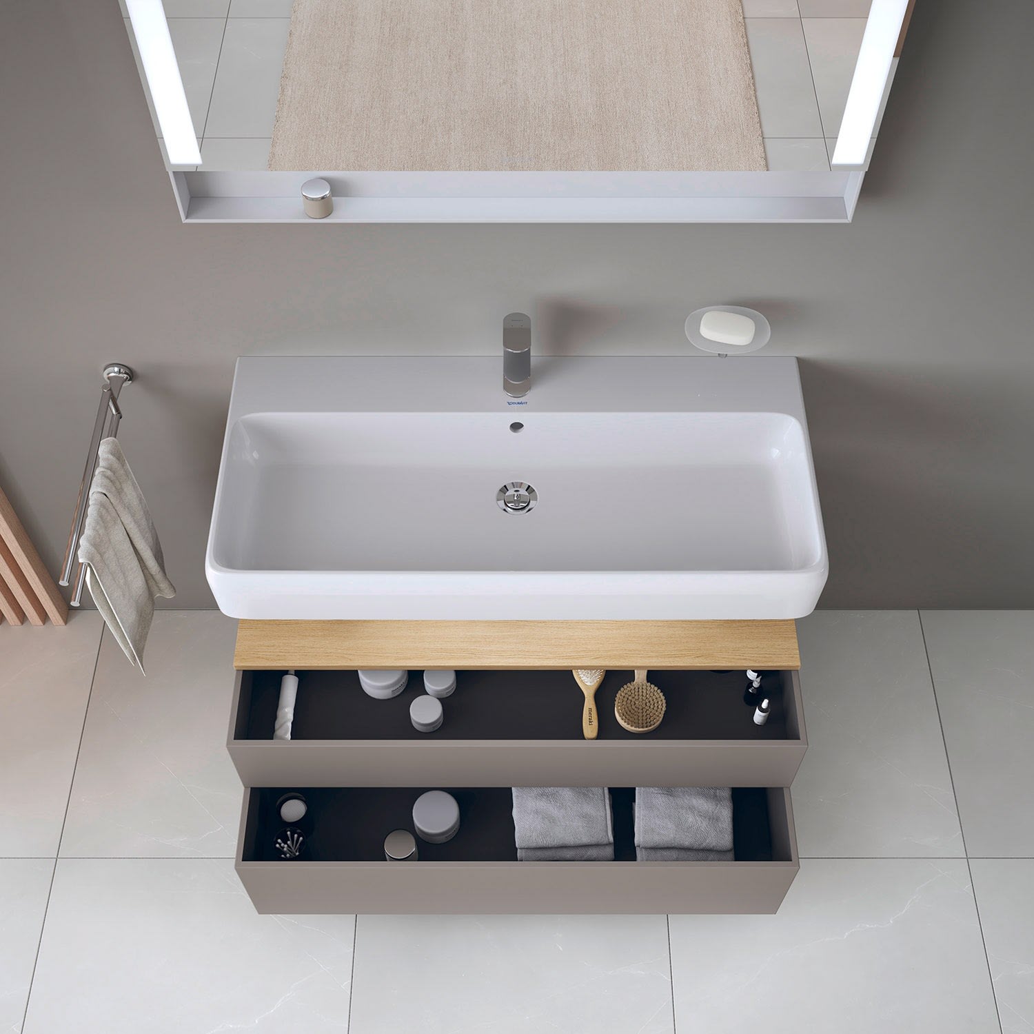 Duravit Qatego Waschtischunterschrank 99 x 59 cm, 2 Auszüge, mit LED Beleuchtung