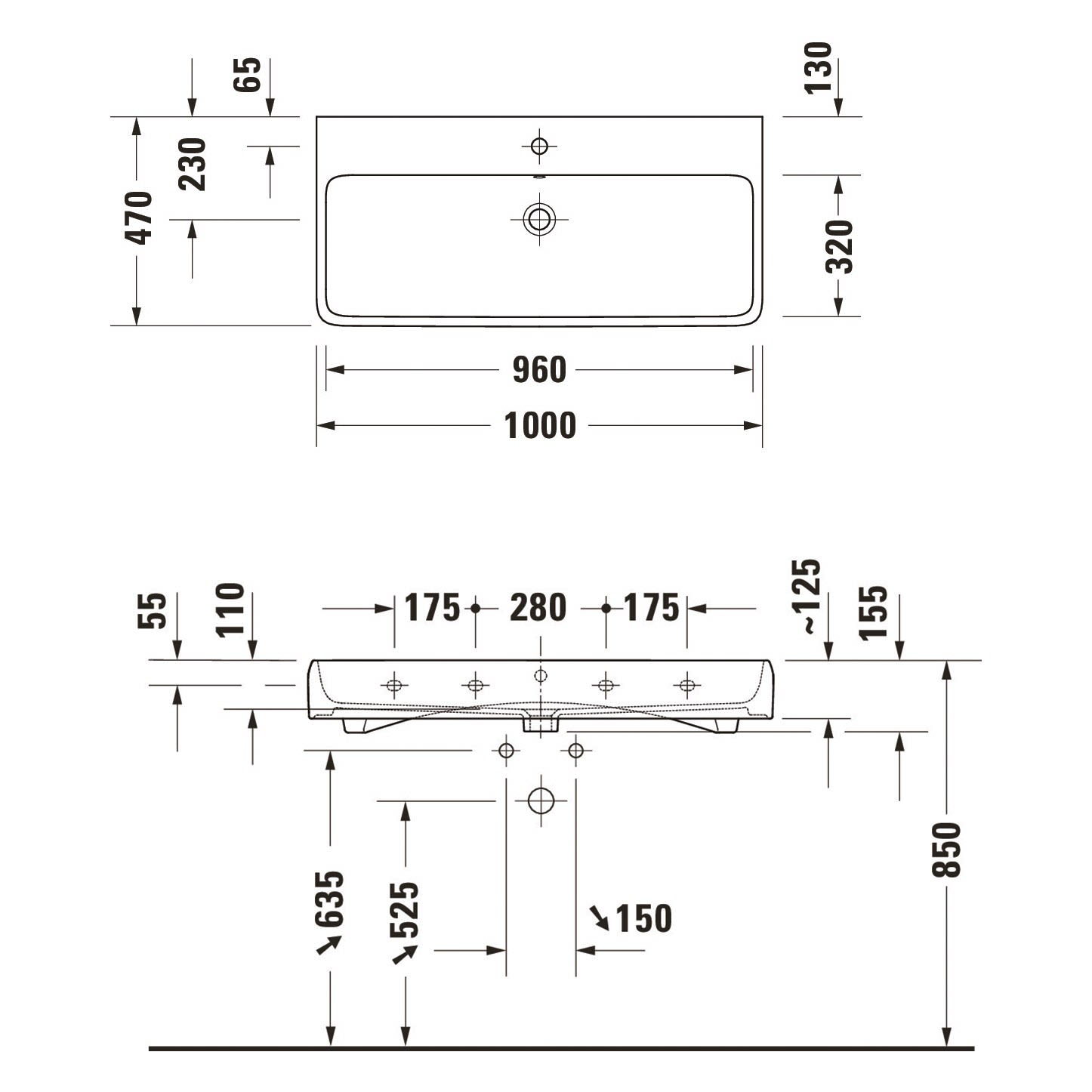Duravit Qatego Waschtisch 100 x 47 cm, 1 Hahnloch