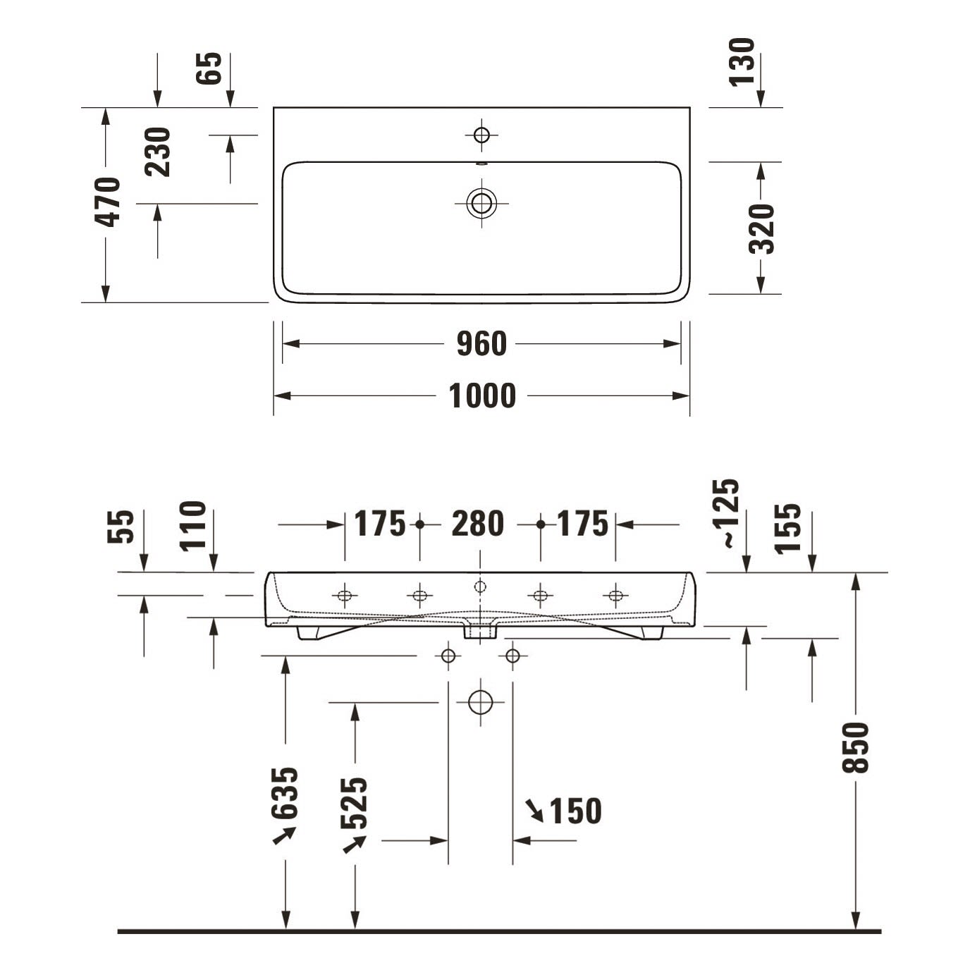 Duravit Qatego Waschtisch 100 x 47 cm, ohne Hahnloch, mit HygieneGlace