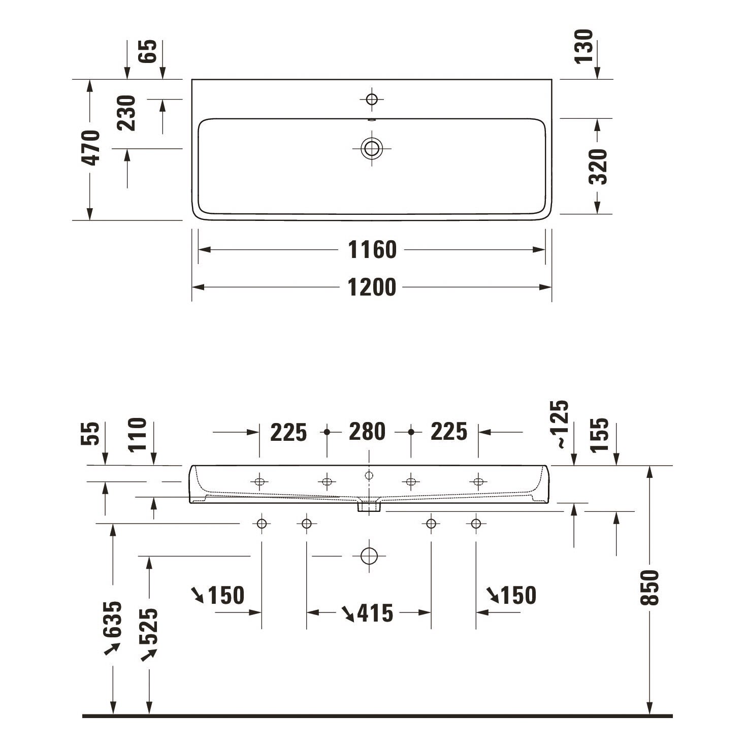 Duravit Qatego Waschtisch 120 x 47 cm, 1 Hahnloch