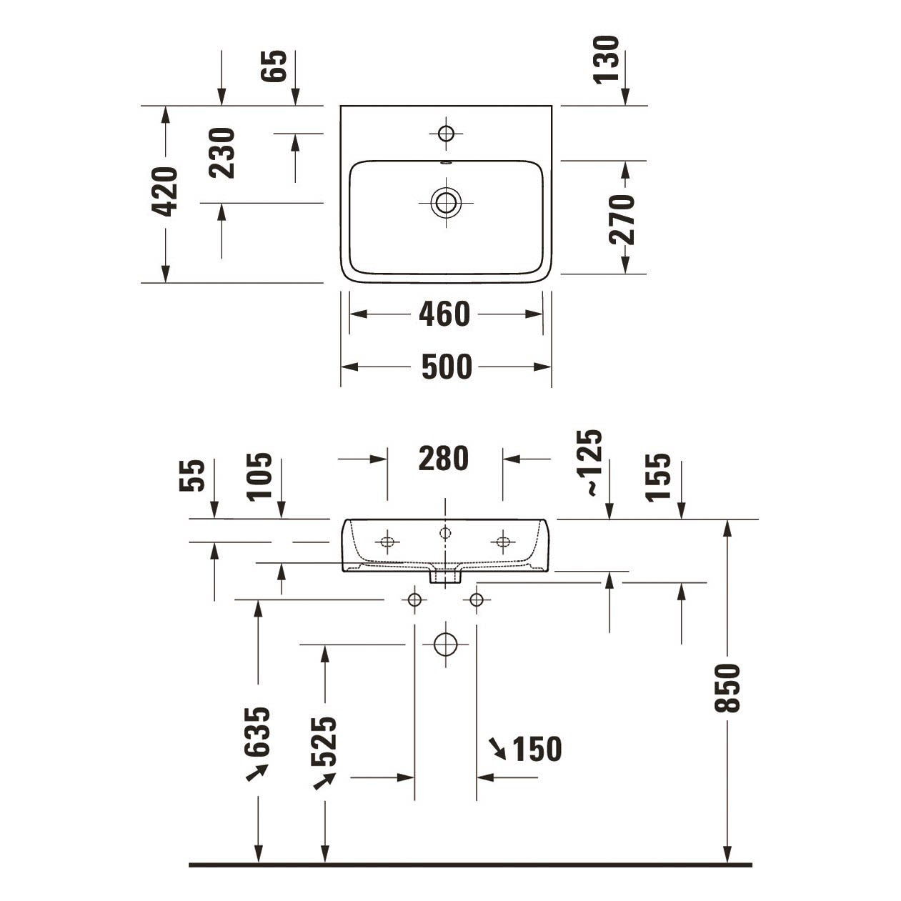 Duravit Qatego Waschtisch 50 x 42 cm, ohne Hahnloch