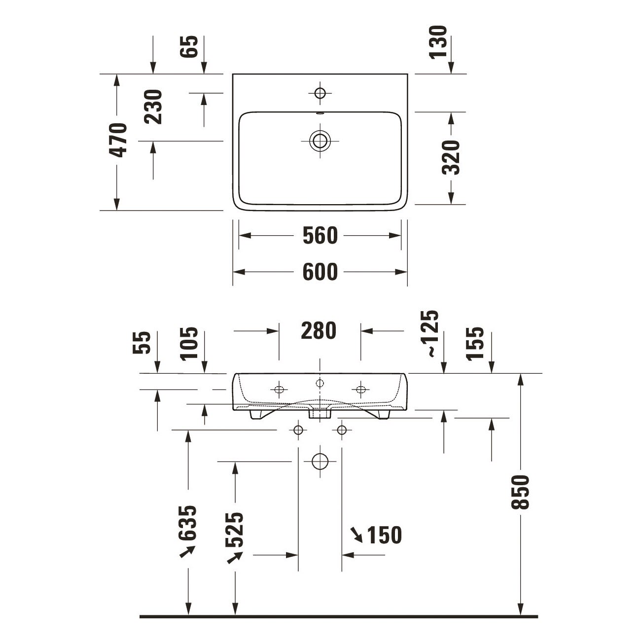 Duravit Qatego Waschtisch 60 x 47 cm, 1 Hahnloch