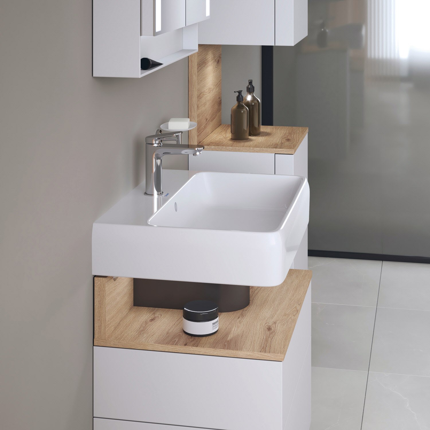 - mit Hahnlochbank als praktische Ablagefläche z.B. für Seife