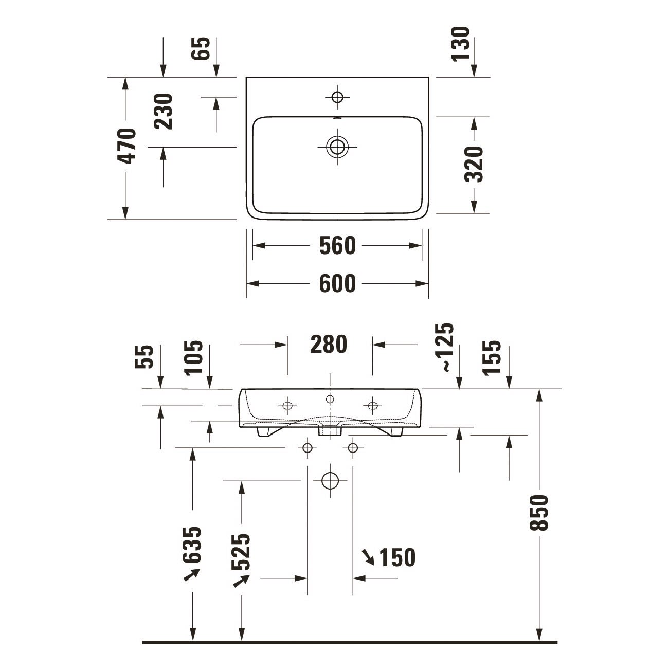 - Unterseite geschliffen, daher für die Montage auf Konsolen oder Waschtischunterschränken mit Konsole geeignet