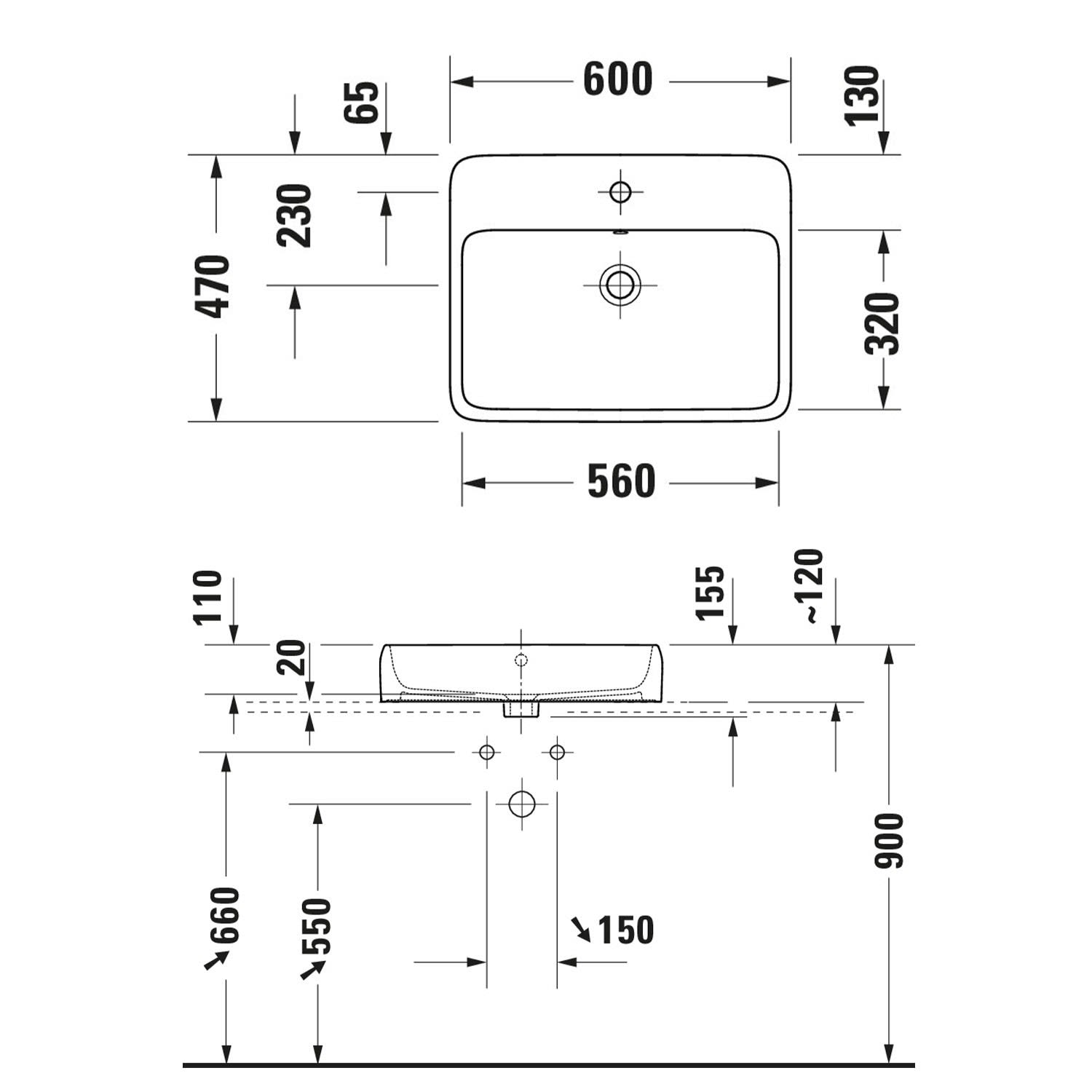 - Unterseite geschliffen, daher für die Montage auf Konsolen oder Waschtischunterschränken mit Konsole geeignet