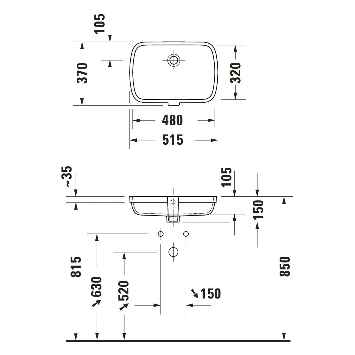 Duravit Qatego Einbauwaschtisch 48 x 32 cm, mit HygieneGlace